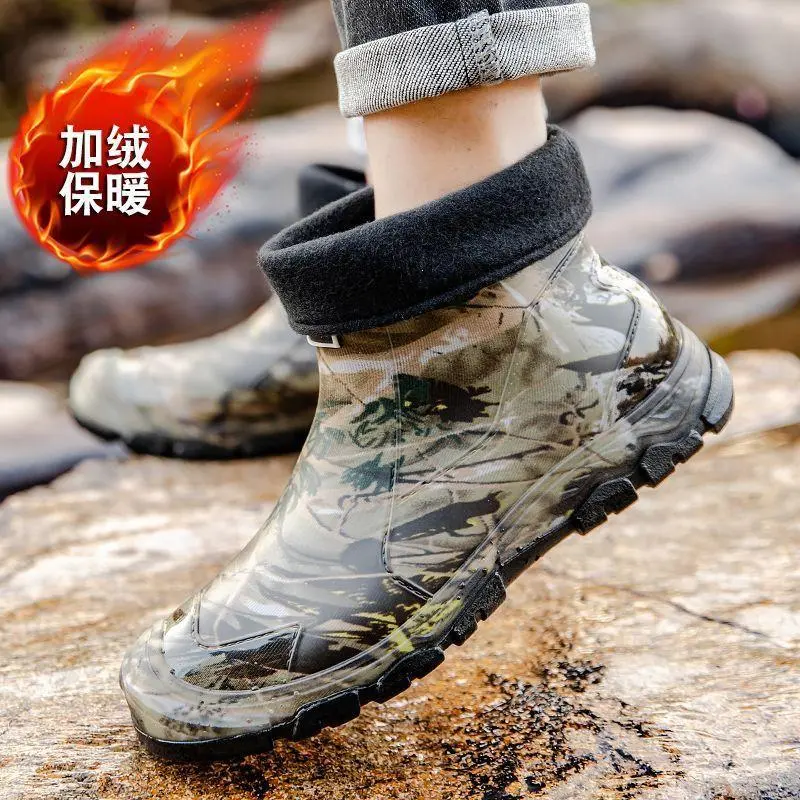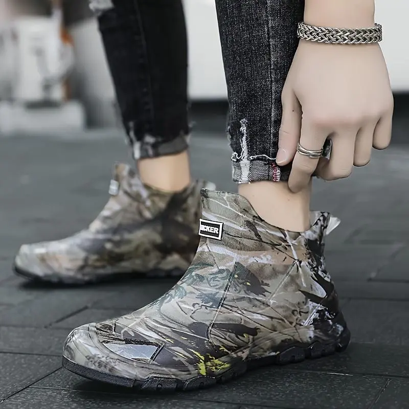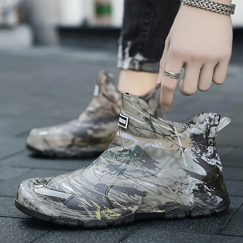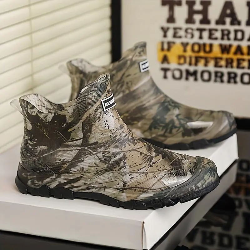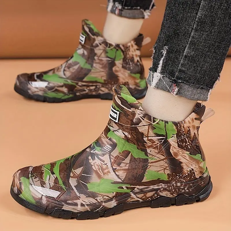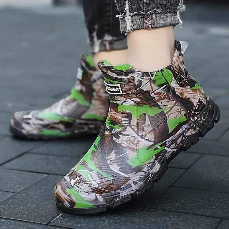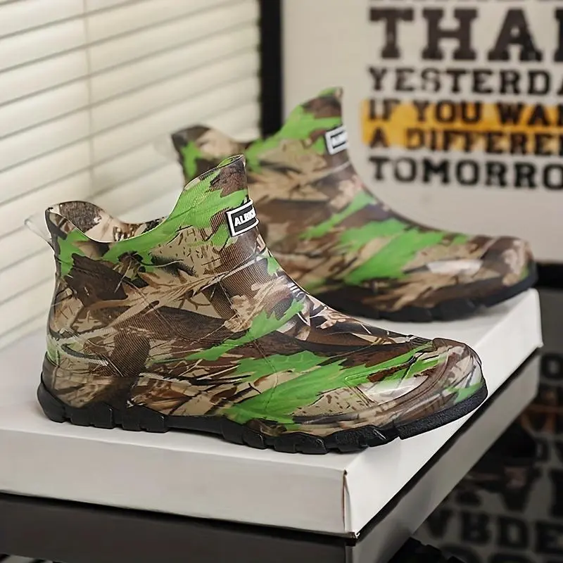 Men's Camouflage Waterproof Rain Boots - Slip-Resistant High-Top Rubber Shaft for Outdoor, Fishing & Casual Wear, Green/Brown/Black Camo Pattern - Boy Footwear Comfort Walking Shoes Closed Chef Orthotic Design