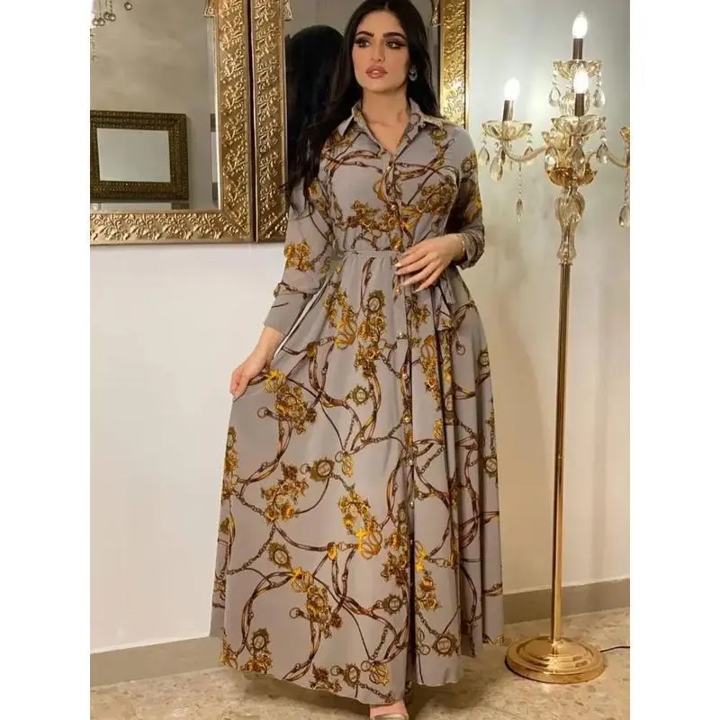 Muslim Abaya Dress Women Ramadan Print Shirt Dresses Autumn Turkey Islamic Vestidos Elegant India Moroccan Kaftan Arab 2025
