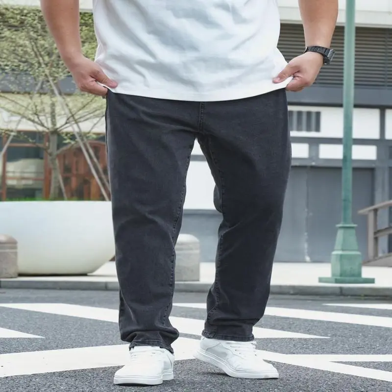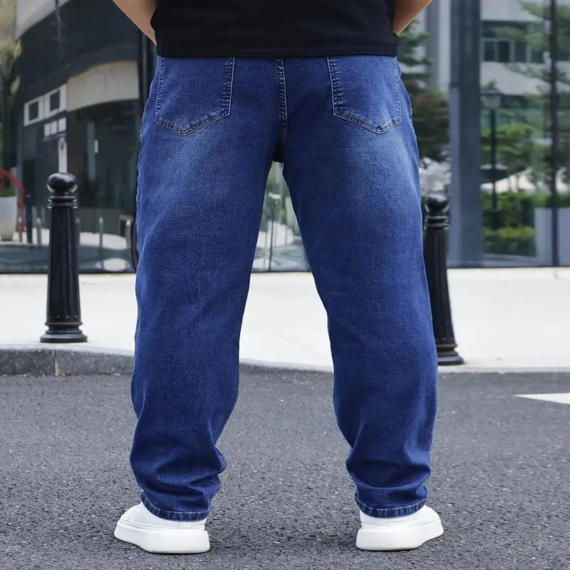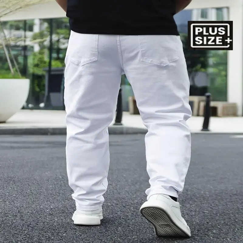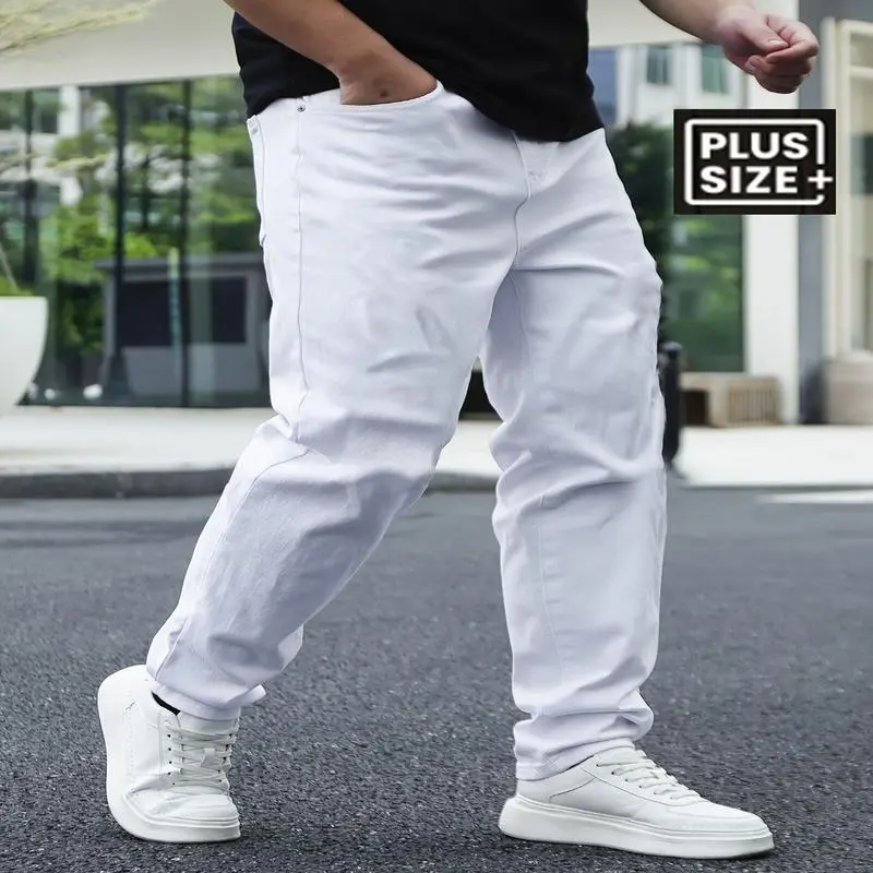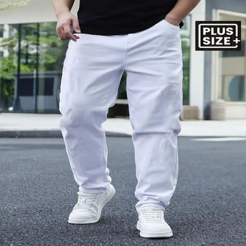 Men's Plus Size Slim-Fit Casual Jeans - Stretch Denim, Machine Washable, All-Season Comfort With Pockets & Buttons, Solid Color Design, PLUS SIZE fashionable jeans Menswear White