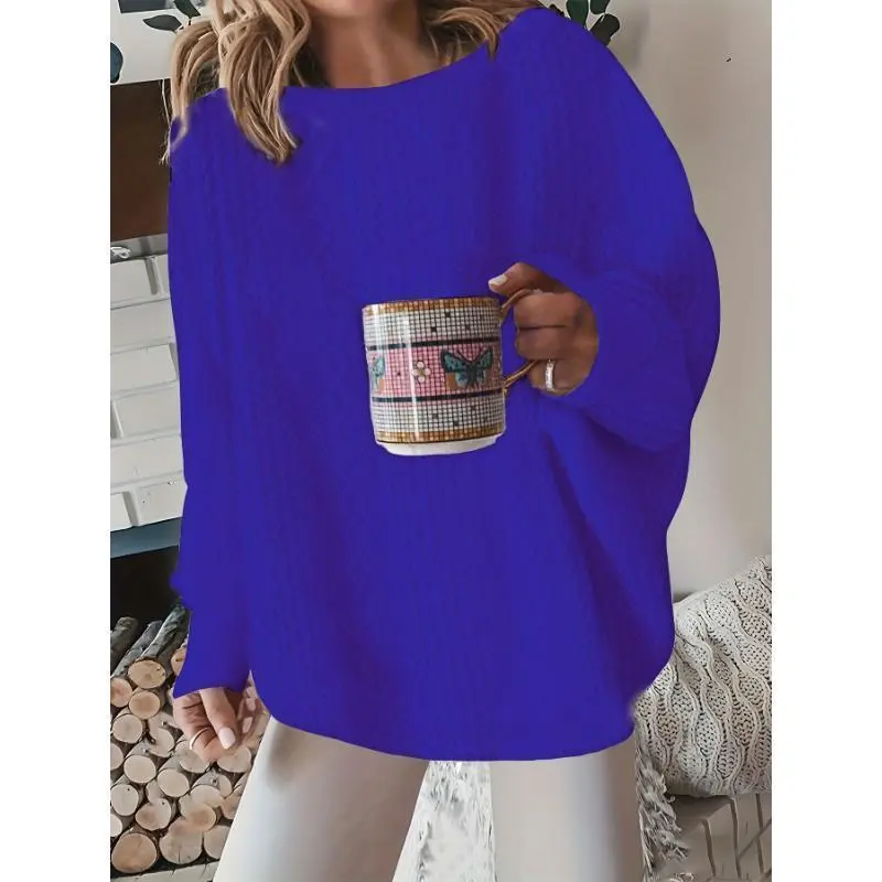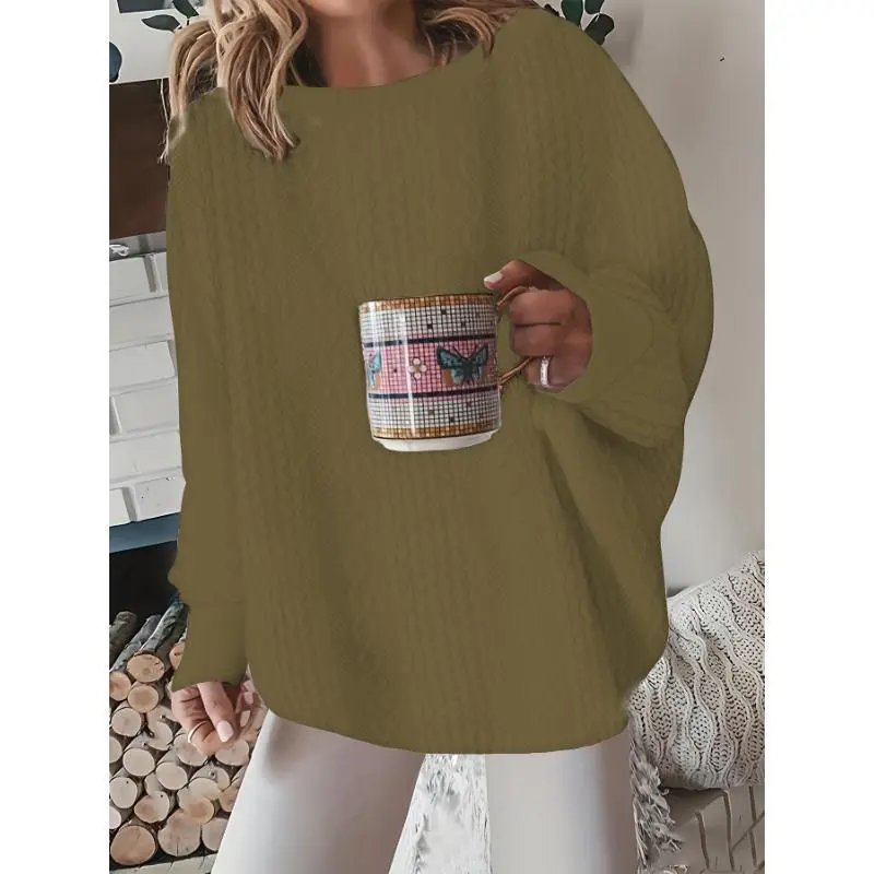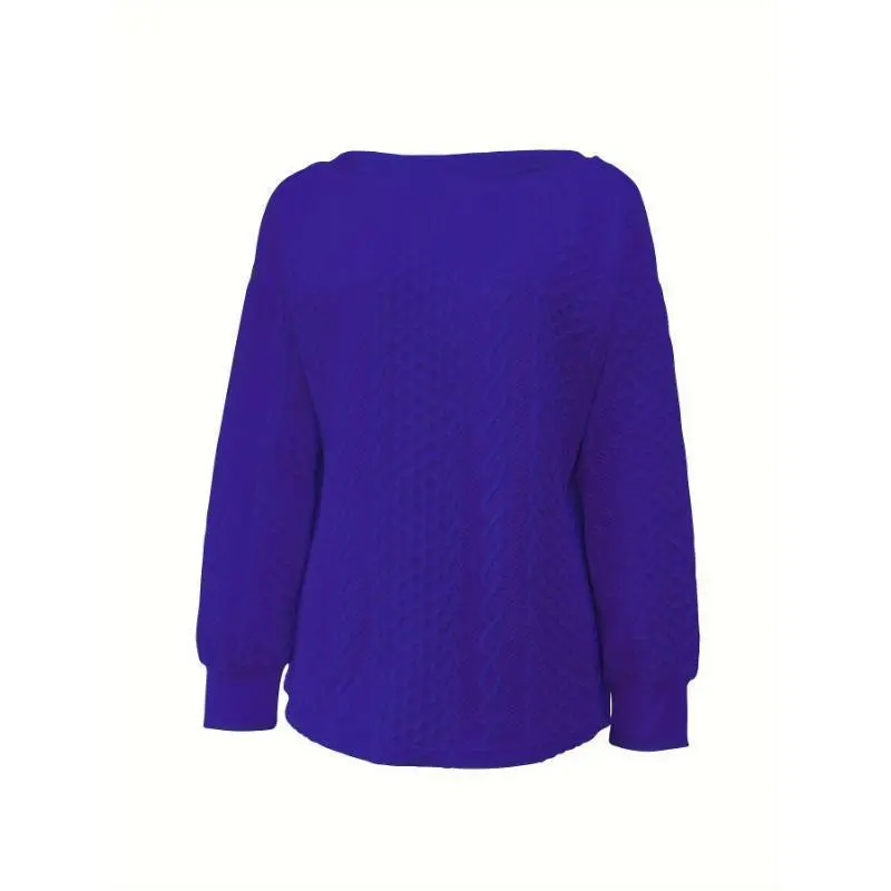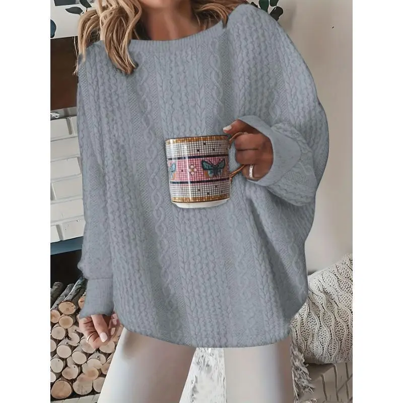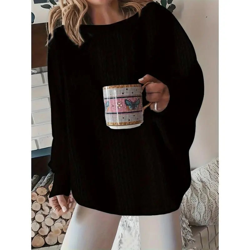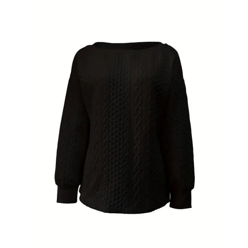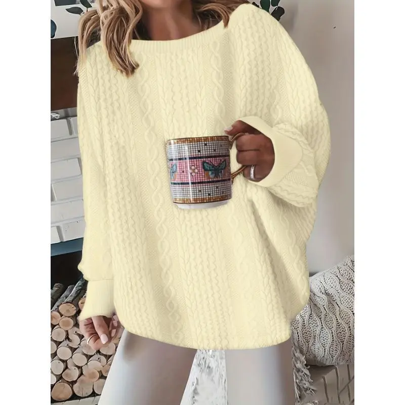 DressCable Knit Pullover Sweatshirt, Elegant Loose Long Sleeve Crew Neck Sweatshirt For Fall & Winter, Women's ClothingSummer Outfits Knitwear Womenswear