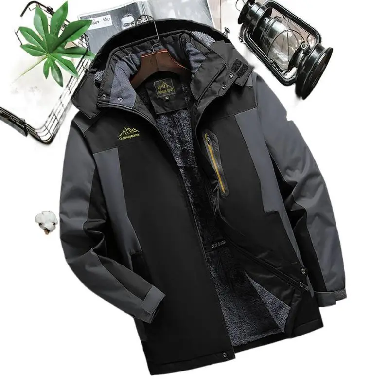 Men's Plus Size Winter Outdoor Jacket Windproof Cold Resistant Waterproof Snow Ski Fleece or Wool Lined Thickened Parka with 4 Pockets
