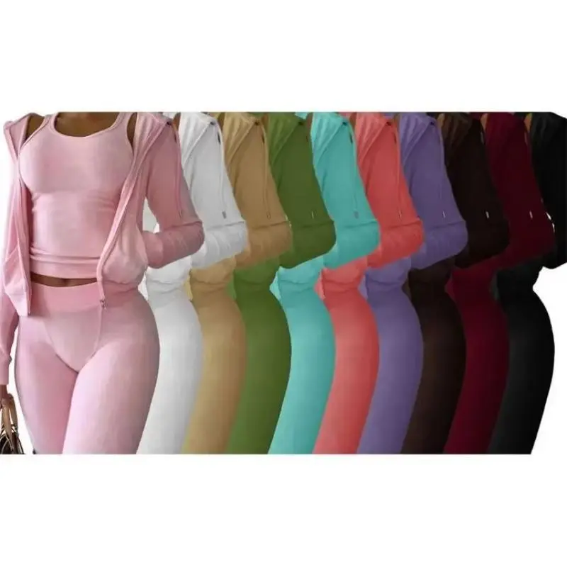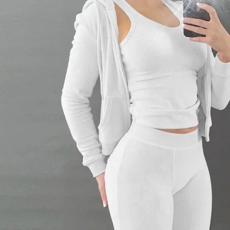 Women Thick Fleece 3 Piece Sets Sweatpants Vest Hoodies Jackets Set Fall Winter Jogger Sweatsuit Tracksuits Long Sleeve Womenswear