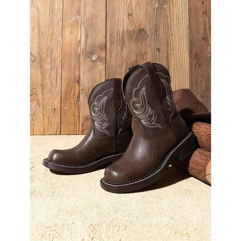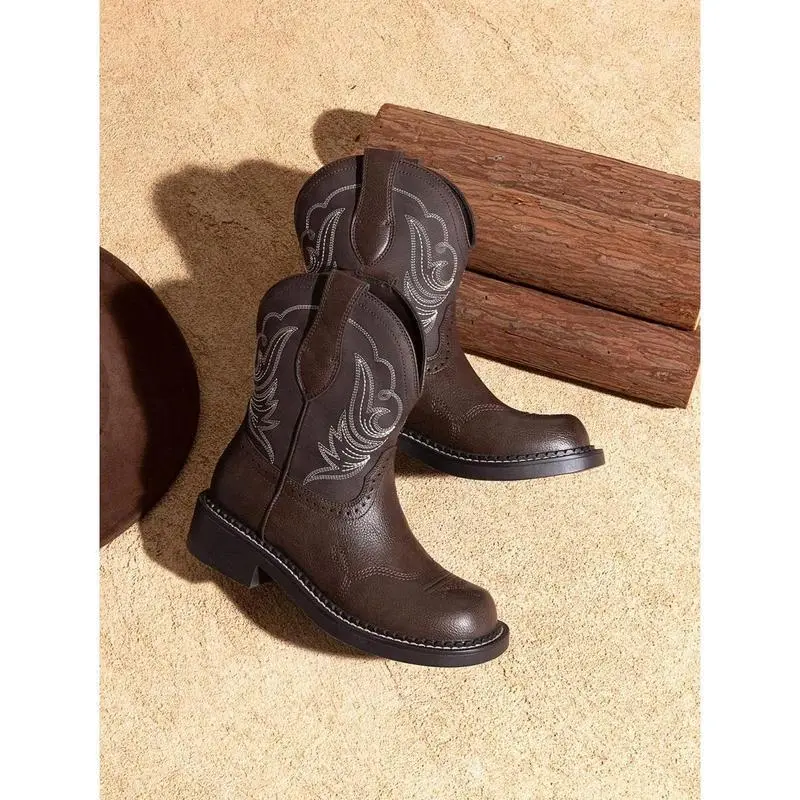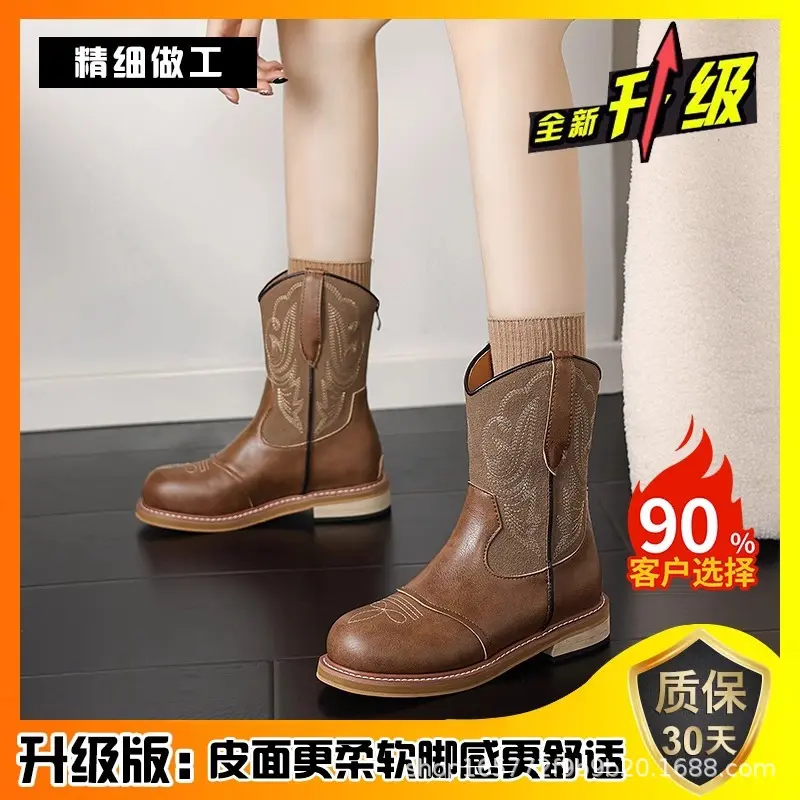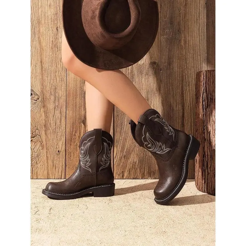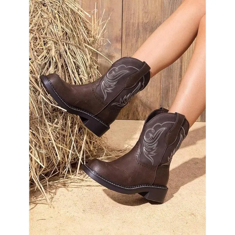 SY Women's Cowboy Western Ankle Booties, Thick Heel Slip-On Embroidered Square Toe Mid-Calf Fashion Boots, For Country Concerts, Rodeos, And Casual Outings,Autumn Winter Short Shaft Riding Boots
