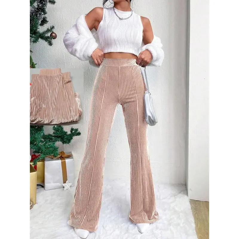 A piece of women's retro velvet material soft and smooth high-waisted design flared trousers women's trousers, suitable for autumn and winter, suitable for outdoor casual parties