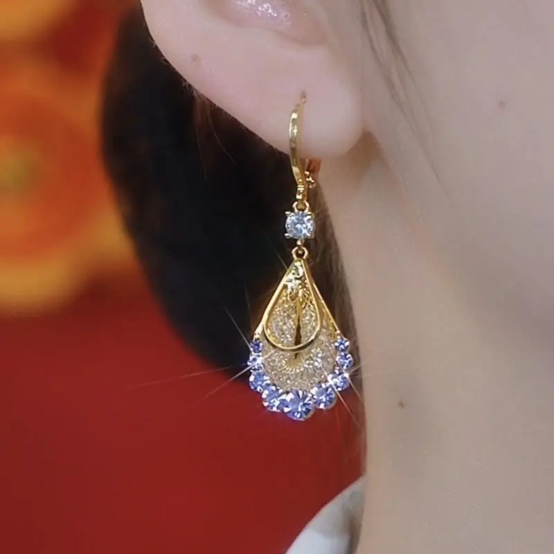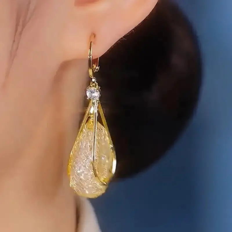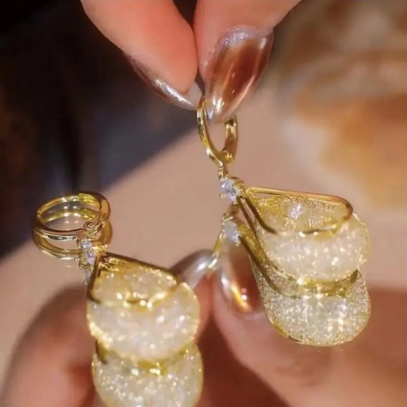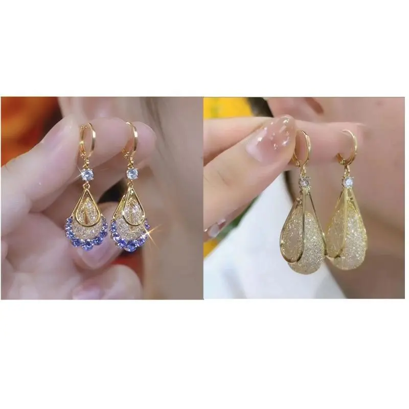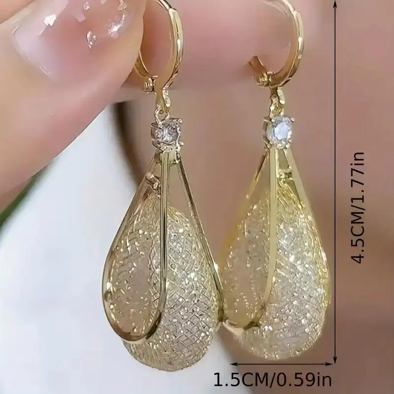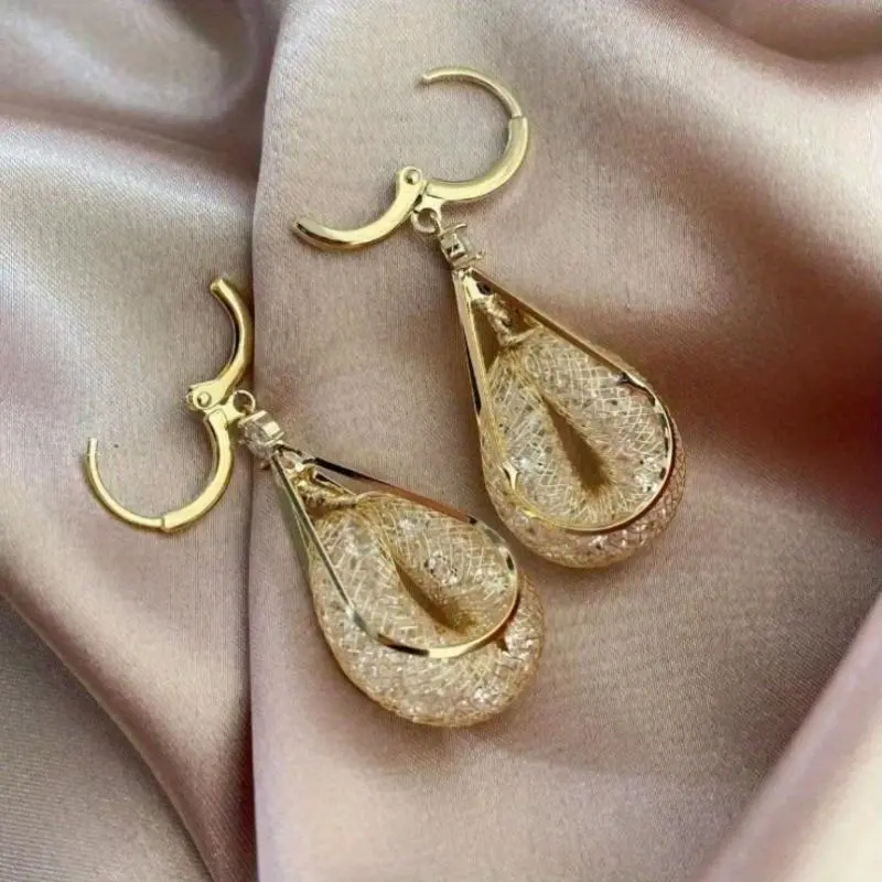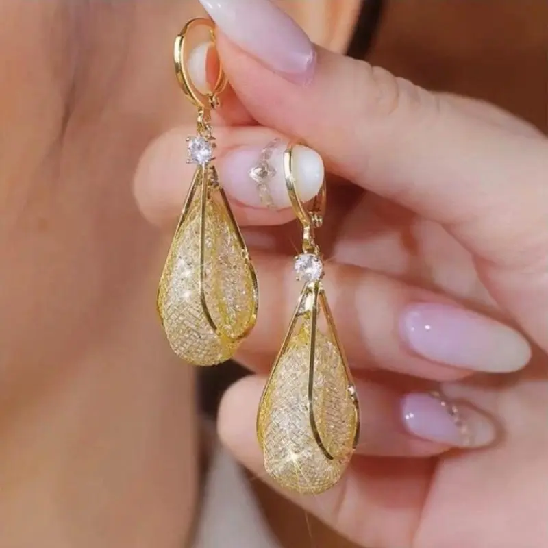 2PairsofElegantTeardropShapedEarrings,SparklingCrystalMesh,AllergyFreeCopperEarrings,MultifunctionalFashionAccessories,SuitableforDailyandVacationUse,AllSeasonApplicable