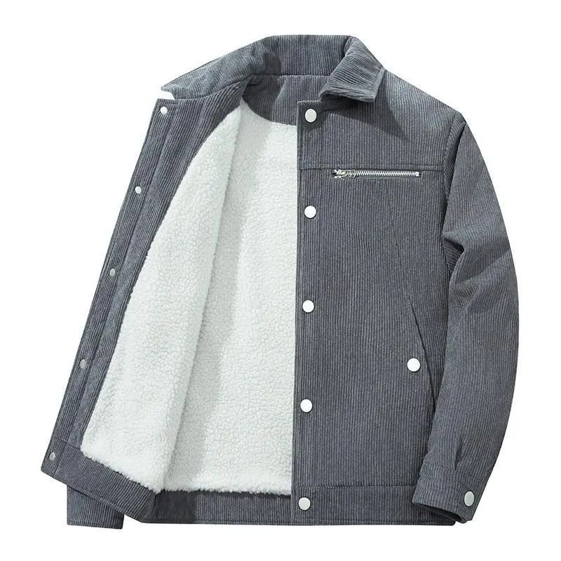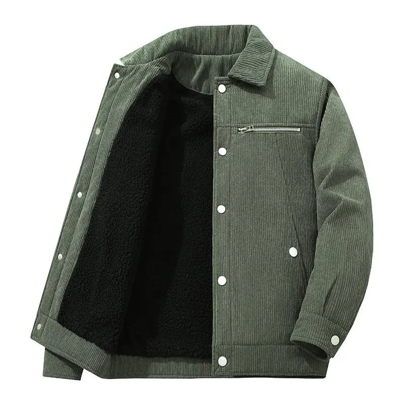 Men's Corduroy Jacket for Autumn and Winter - Casual Warm Fleece Lined Collared Coat with Pockets Suitable for Outdoor Sports, Daily Commuting, Running Workouts, and Travel Hiking Hoodie Khaki