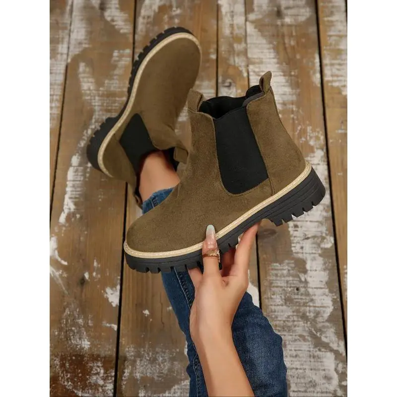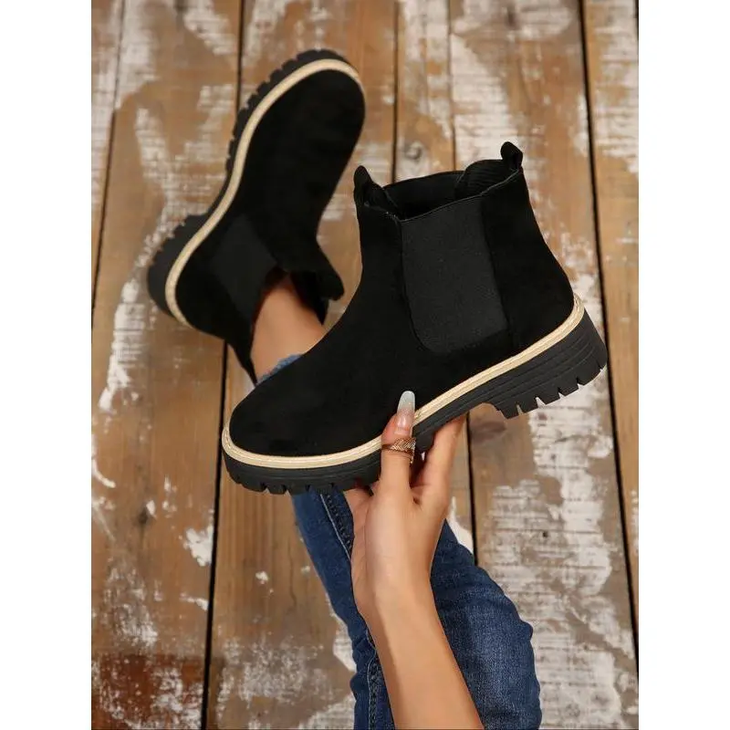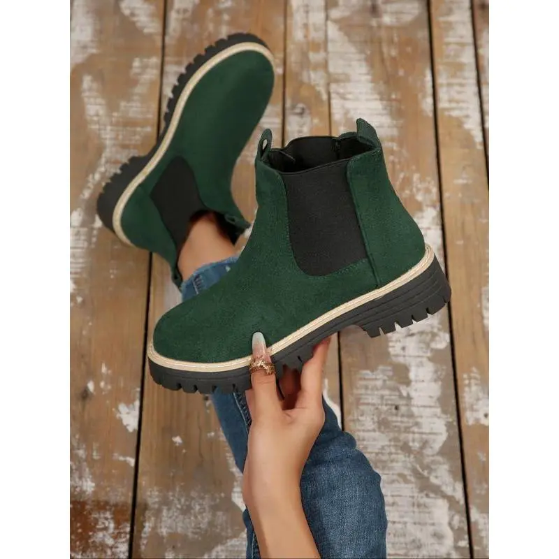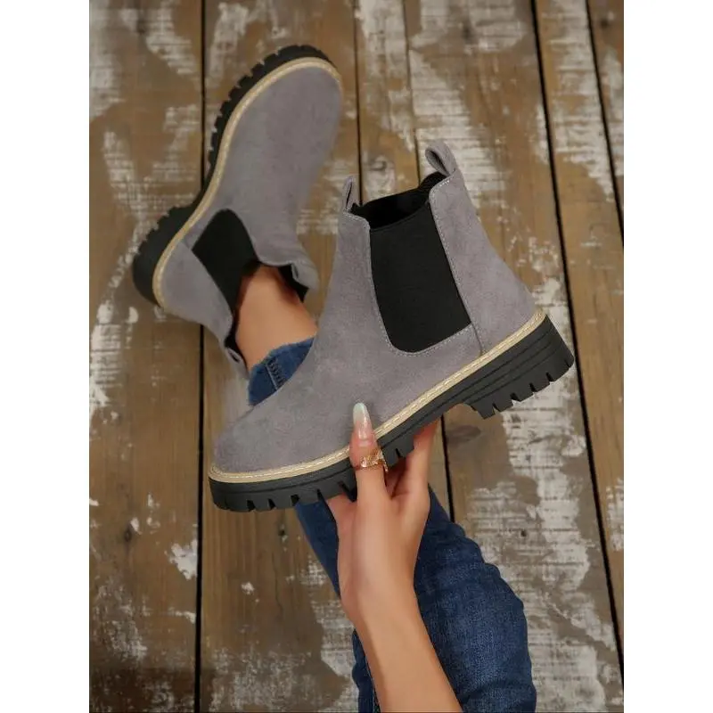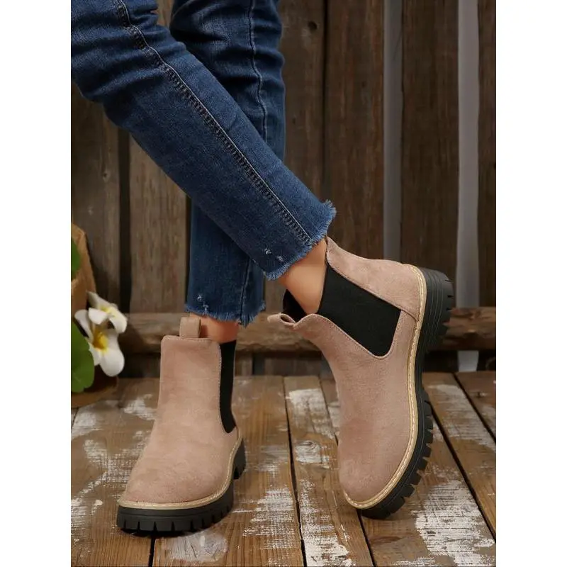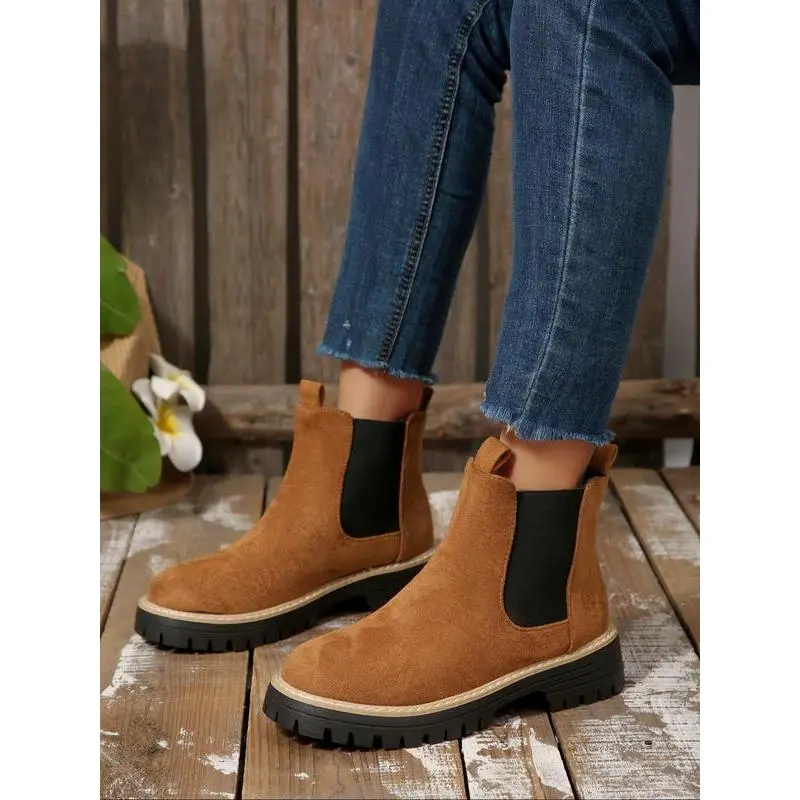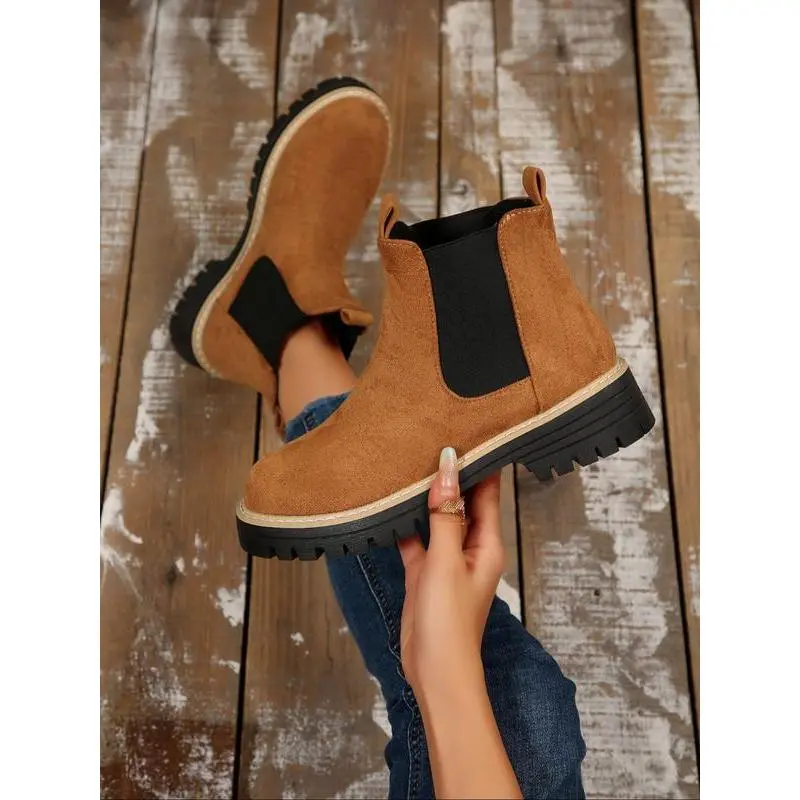 Women's Fall Winter New British Style Suede Chelsea Boots, Lightweight Thick Sole Anti-Slip Fashion Classic Short Boots, Ankle Boot