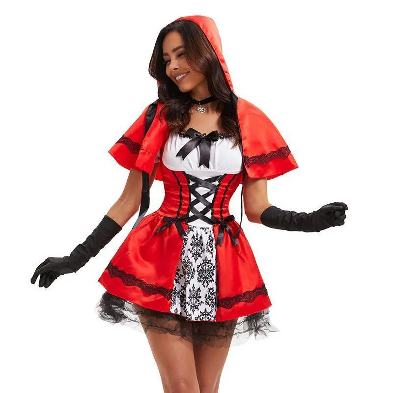 RunsSmall�CSizeUpforthePerfectFit!HalloweenCosplayCoolRedSeriesCostumeCastleQueenGothicStyleShortDresswithHoodedCapeMaidOutfitBlouses & Shirts