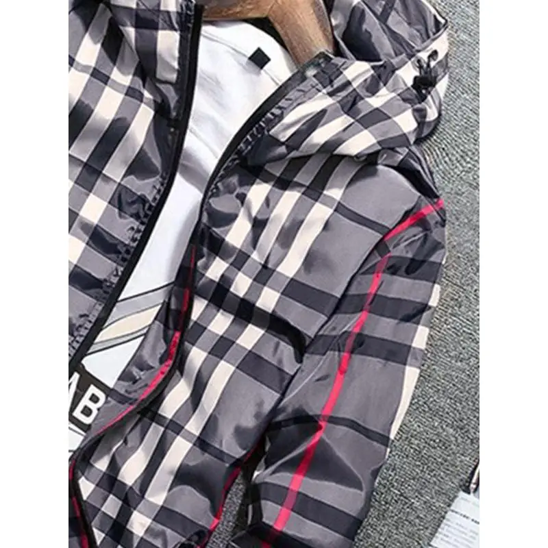 Men's Lightweight Hooded Jacket, Zip-Up Windbreaker with Adjustable Drawstring & Color-Block Stripes for Autumn