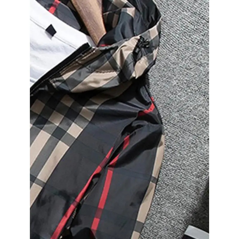 【Lightweight Material】: Crafted from woven fabric that offers a moderate thickness, suitable for the fall season. 【Drawstring Hood】: Features an adjustable drawstring on the hood, allowing for a customized fit and enhanced heat retention. 【Contrast Stripes】: Showcases eye-catching color-blocking and striped accents, distinguishing it from typical jackets. 【Fitted Cut】: Designed for a fitted silhouette, providing a tailored look while allowing ease of movement. 【Functional Zipper】: Equipped with a reliable zipper closure, ensuring security and ease when putting on or removing.