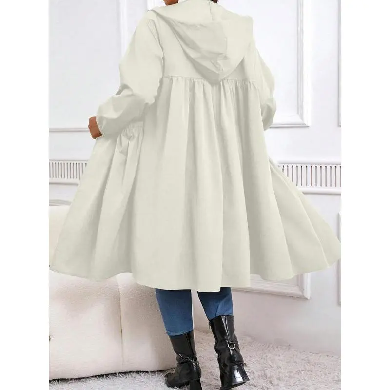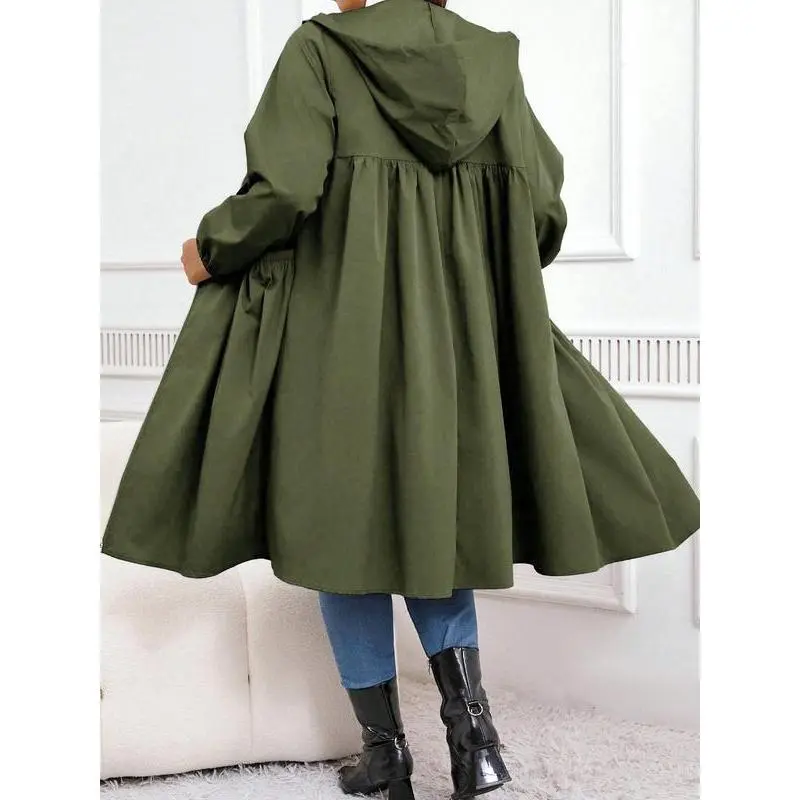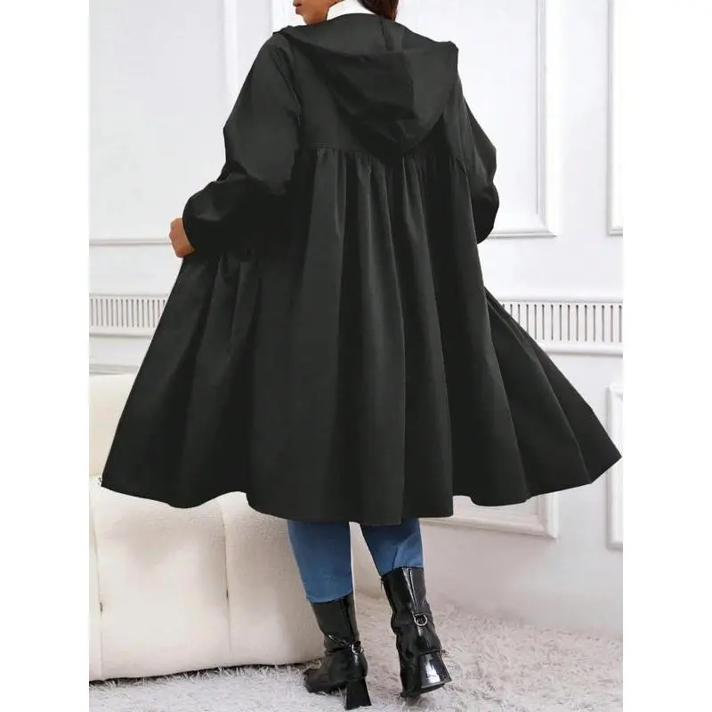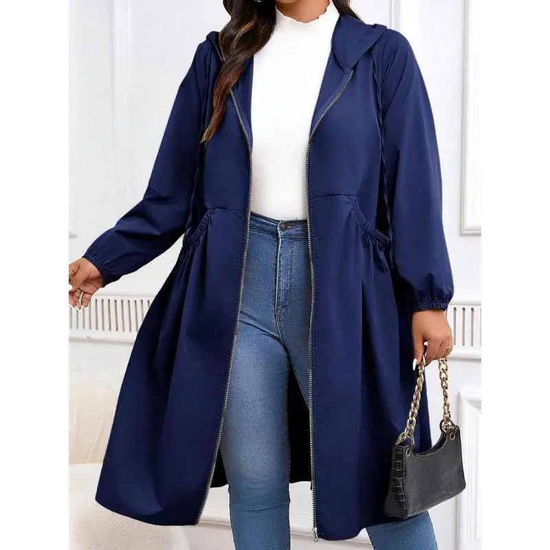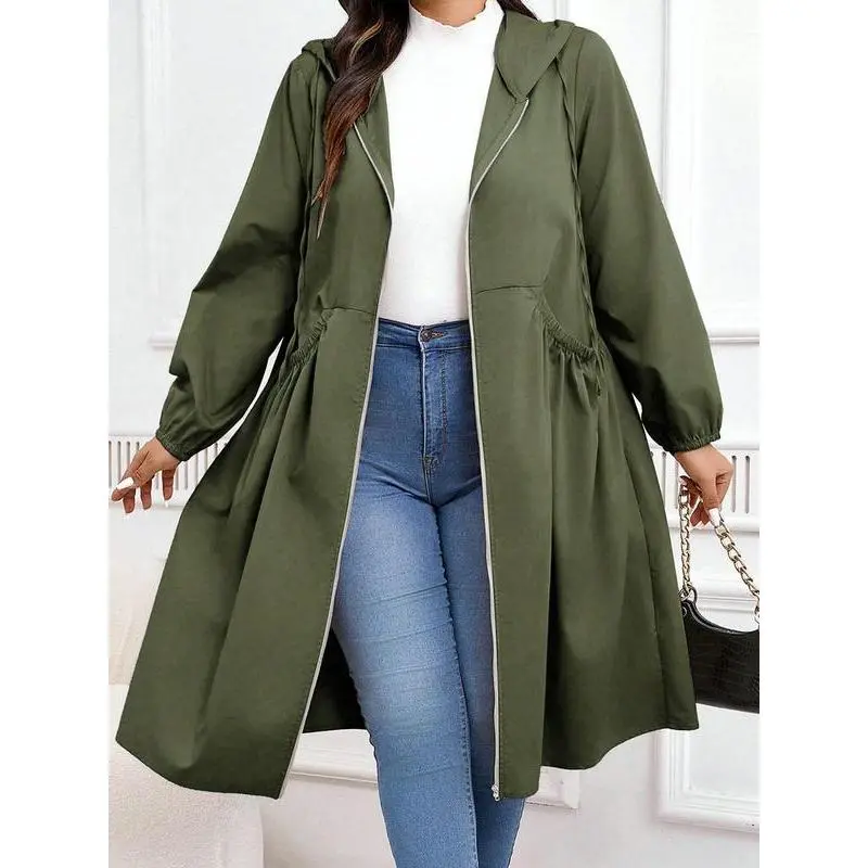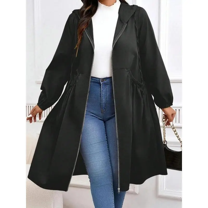 Large sized Muslim women's coat, casual long sleeved woven fabric, knee length loose fit, fashionable outerwear for autumn and winter