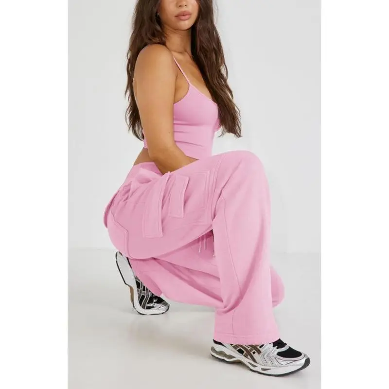 Womens Fleece Cargo Sweatpants High Waisted Drawstring Baggy Joggers Pants Straight Leg Casual Sweatpants Womenswear Bottom