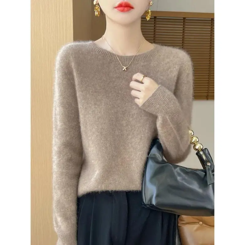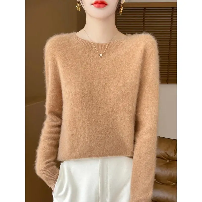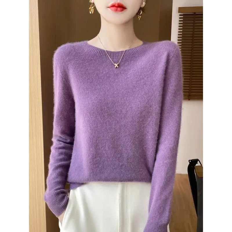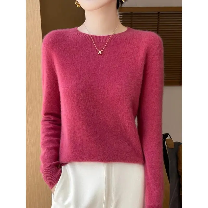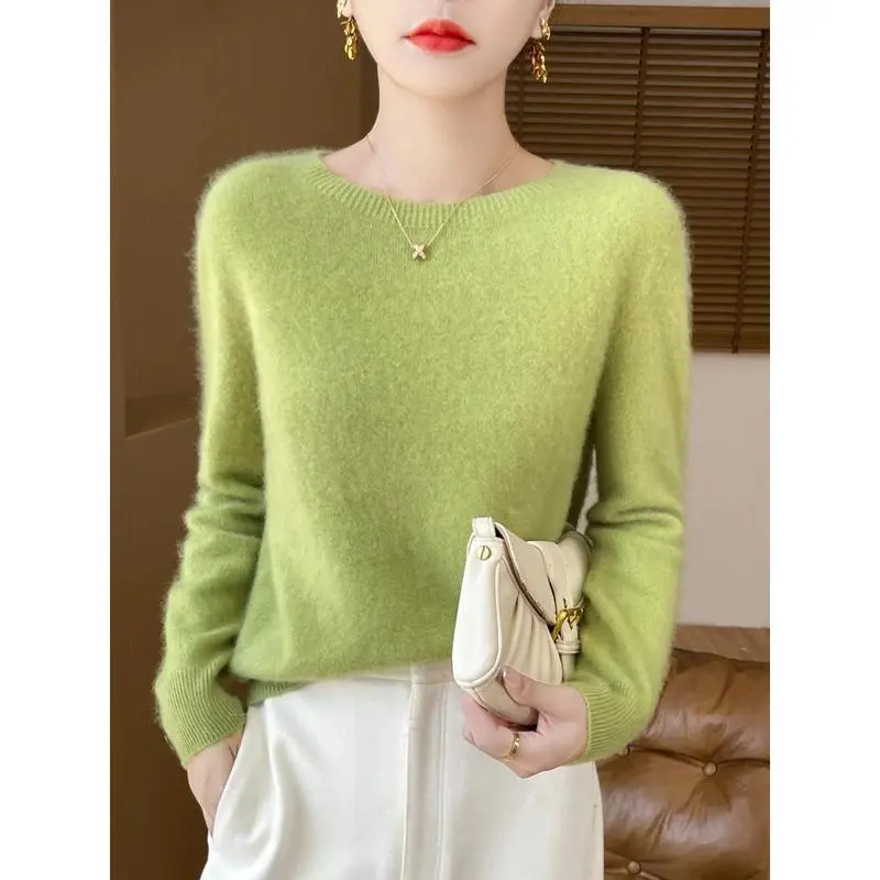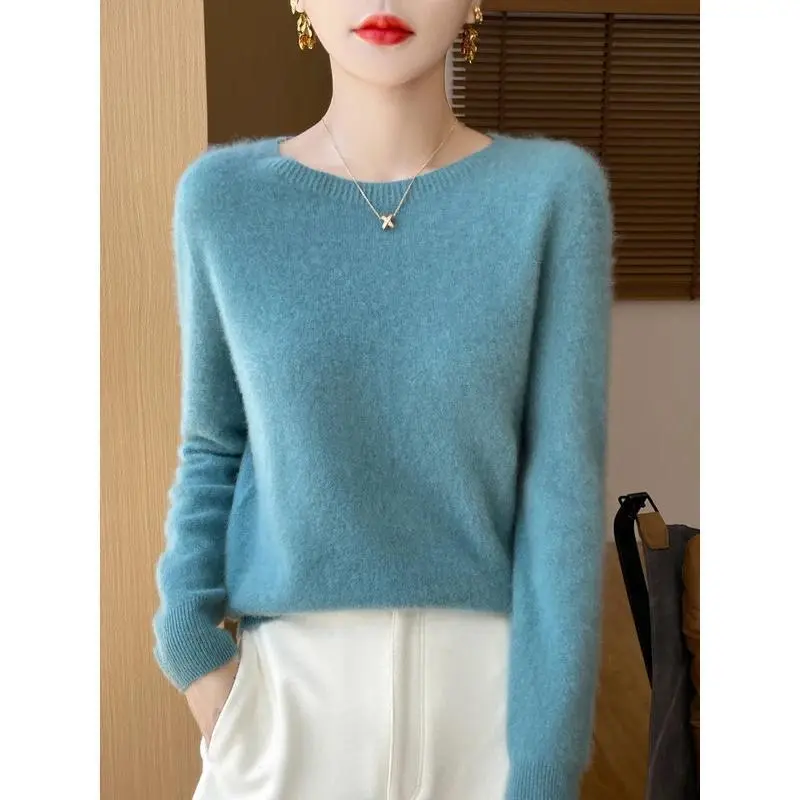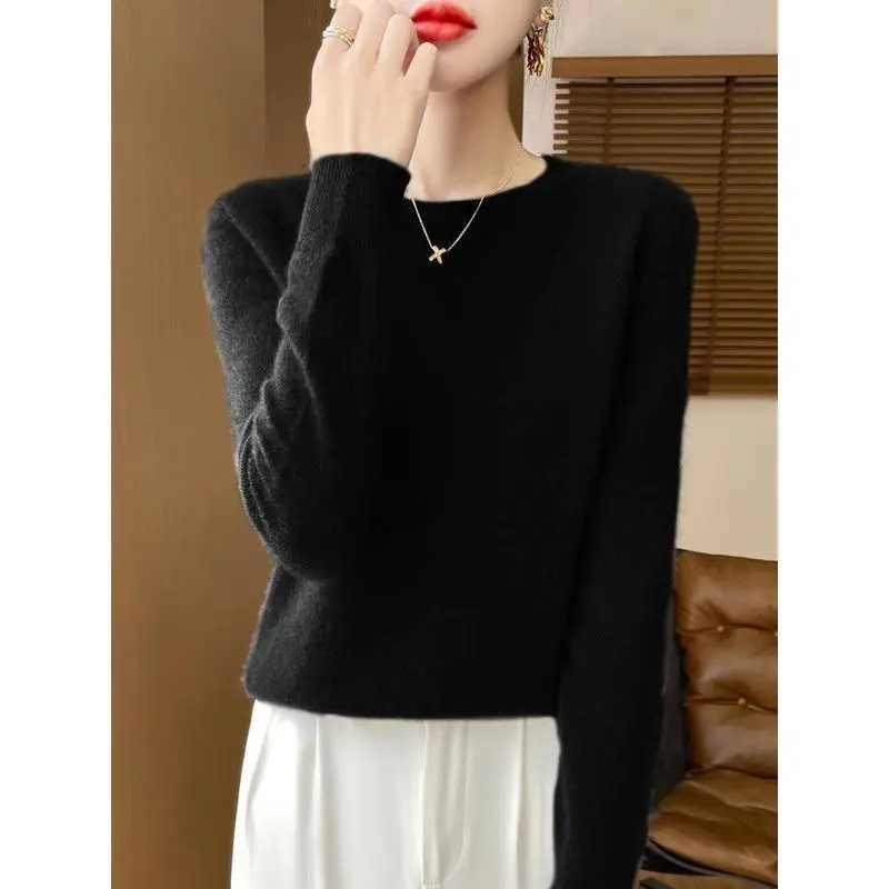 Autumn Winter Women Clothing O-Neck Pullover 100% Merino Wool Sweater New Fashion Cashmere Tops Bottoming Long Sleeve Knitwear
