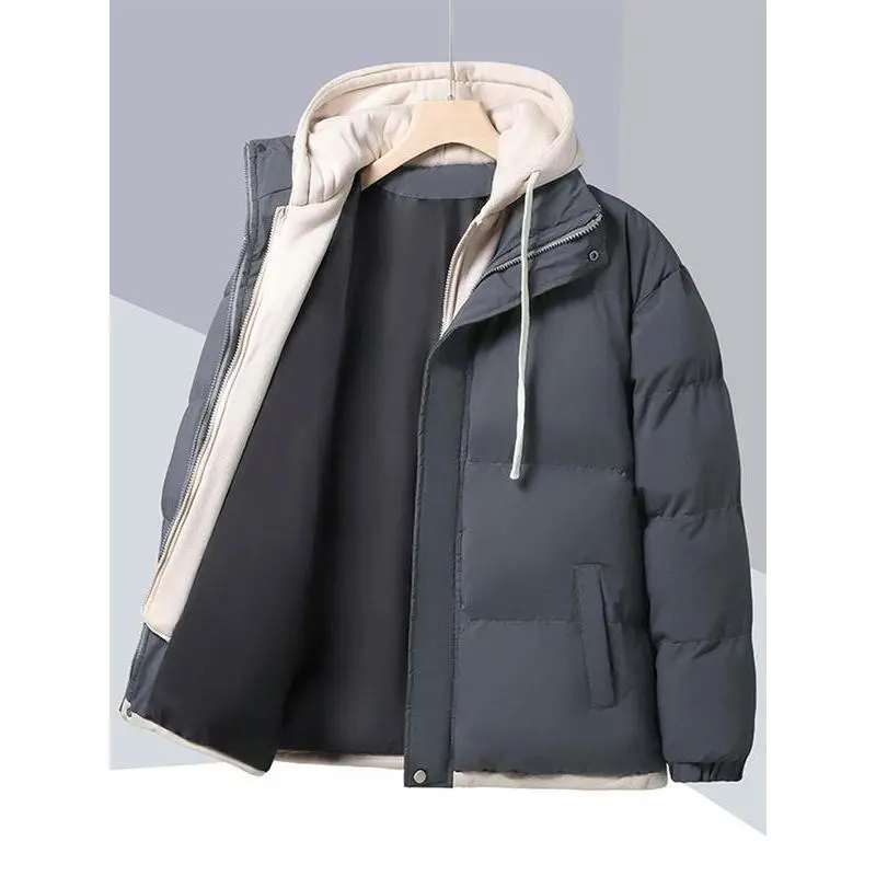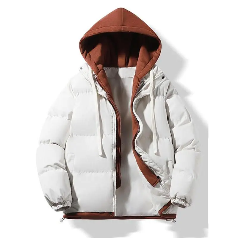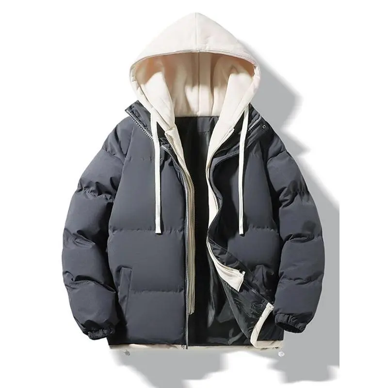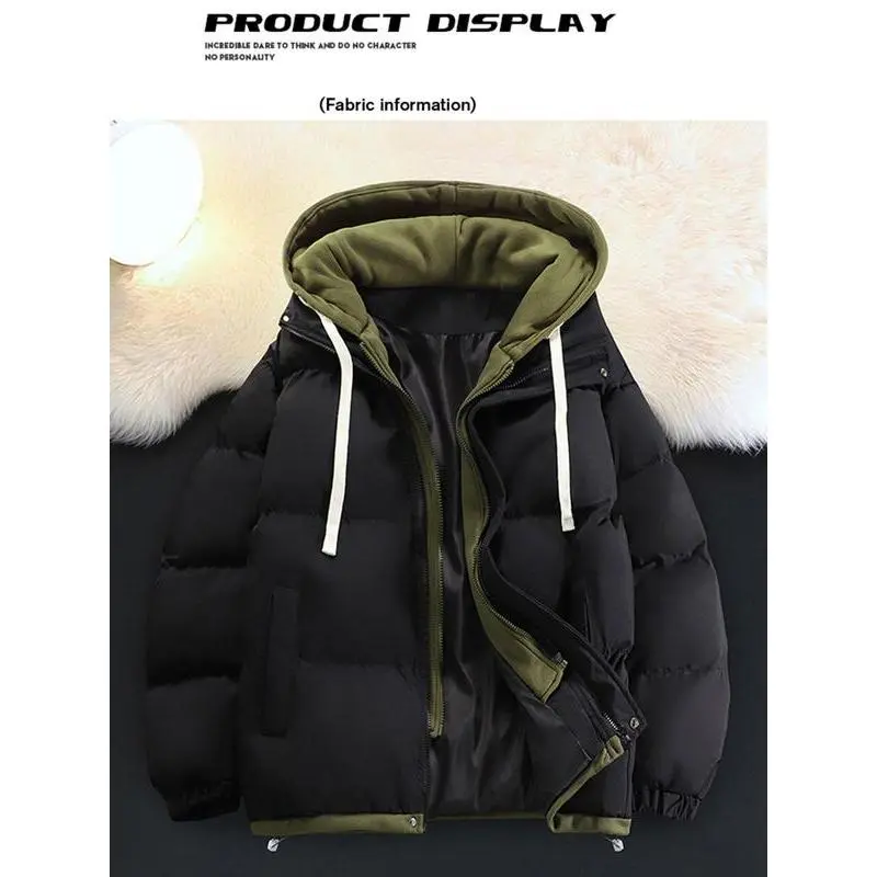【Warmth Assurance】: This high-quality thick cotton jacket provides effective insulation against cold winter weather. 【Couples' Choice】: Designed for both men and women, this jacket offers a coordinated look for couples. 【Practical Features】: Equipped with a hood, this jacket helps shield you from wind and cold conditions. 【Layered Look】: The faux two-piece design adds a unique visual element, differentiating it from standard outerwear. 【Loose Fit】: The loose-fitting cut allows for easy layering over other clothing, enhancing comfort during wear.