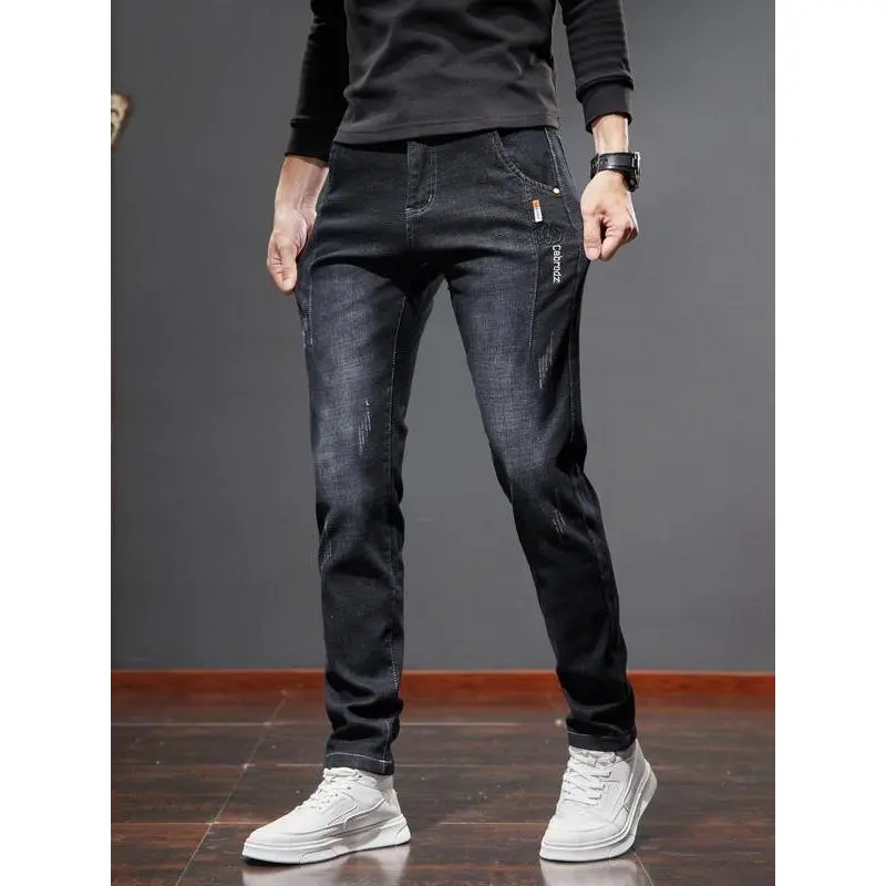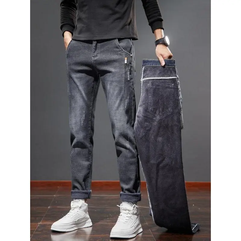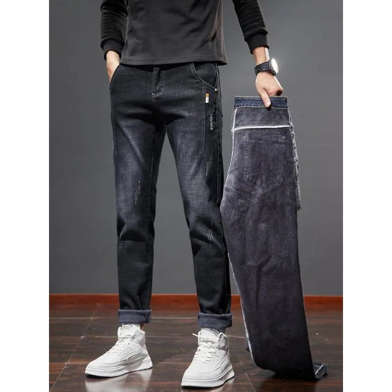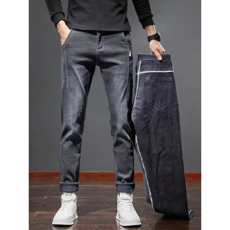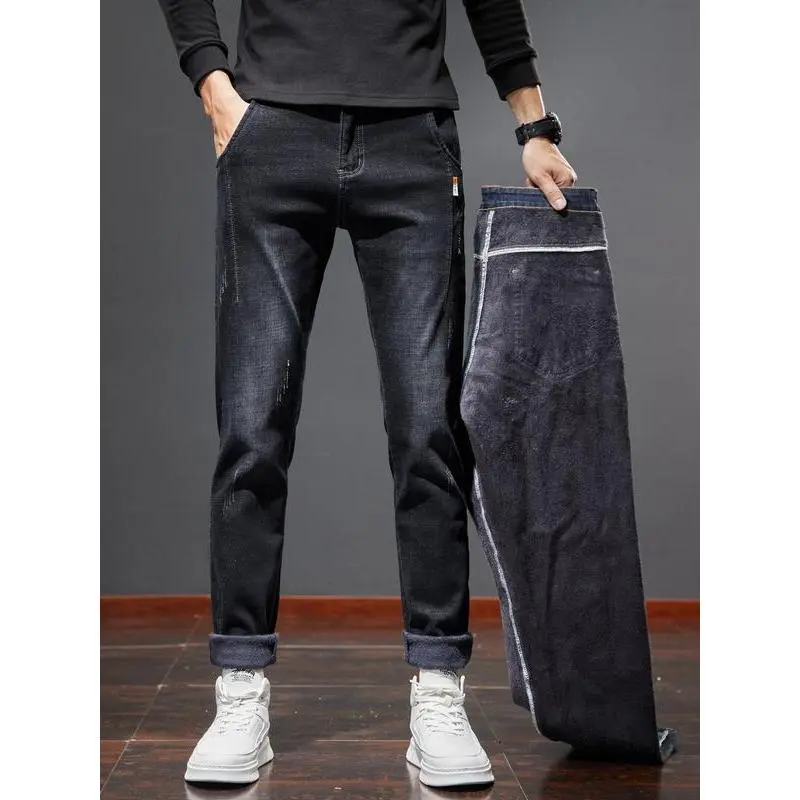 Men's Winter Fleece Lined Jeans, Slim Fit Stretch Denim Jeans, Casual Fashion for Outdoor Activities, Comfortable Loose Fit Daily Wear
