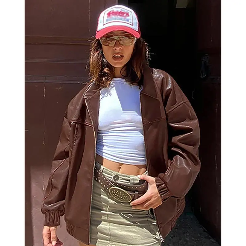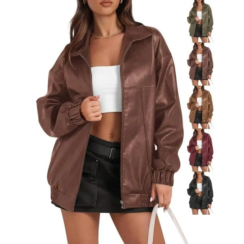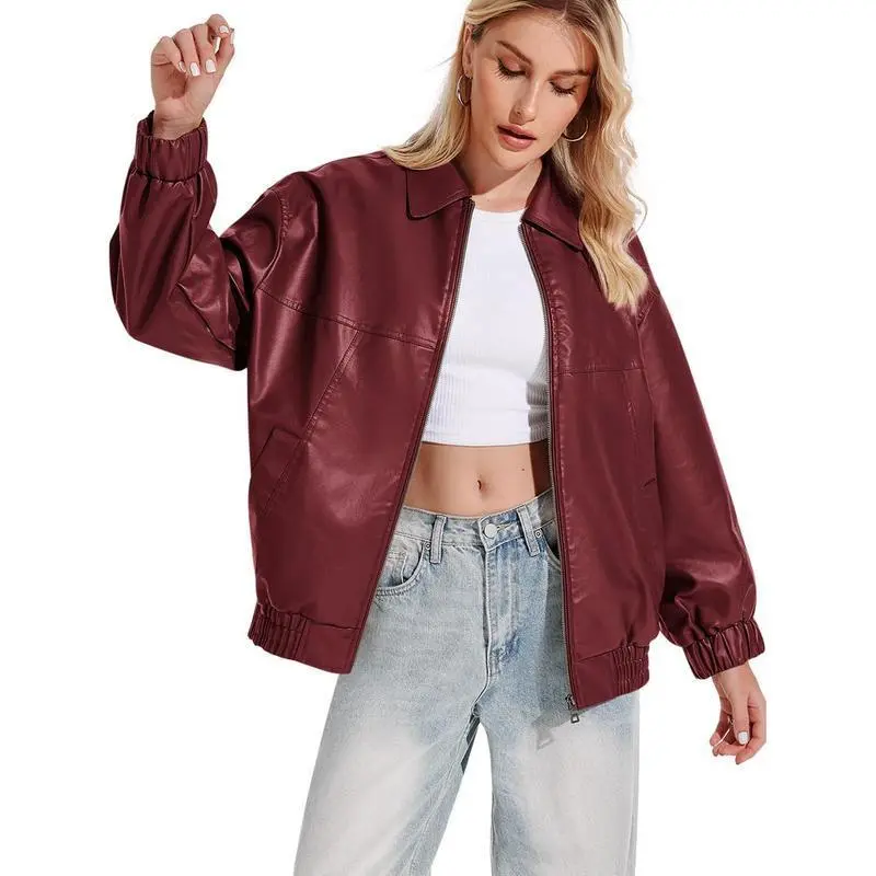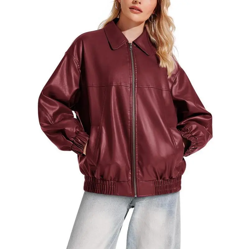 Langwyqu Womens Leather Jacket Oversized Faux Casual Zip Up Bomber Motorcycle Jackect Trendy Fall Winter Clothes S-XXL