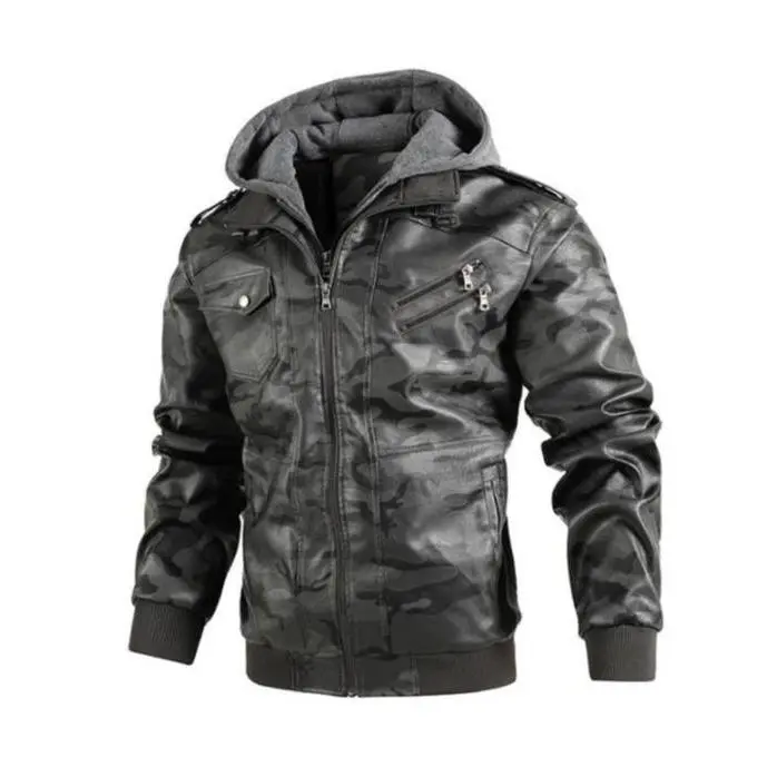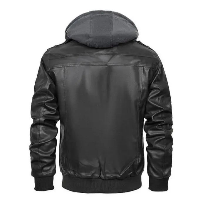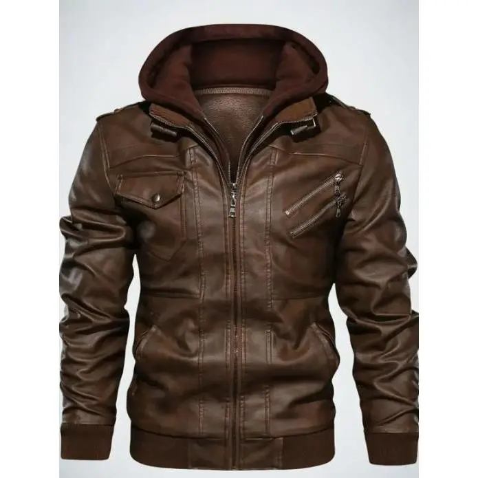 Men's Slim Fit Solid Zip Up Pocket Long Sleeve Hooded Pu Jacket, Trendy Casual Zipper Coat for Daily Outdoor Life, Zip Up Jacket, Men's Clothing, Longsleeves Menswear, Hooded Coats, Workwear Jackets, Motorcycle Streetwear, Solid Color Overcoat