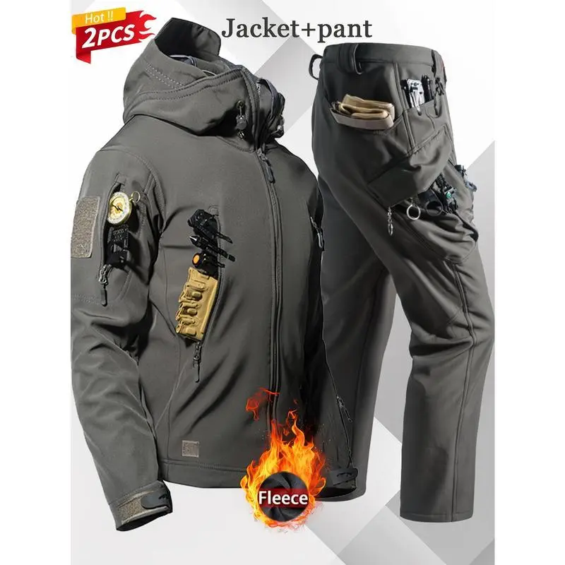 Men'S Heavy Duty Winter Jacket and Pants Set - Windproof & Rip-Resistant Hard Shell, Thermal Insulated Fleece Suit with Hooded Jacket & Full-Zip Pants, Loose Fit Outdoor Gear for Skiing, Snowboarding, Hunting, Camping - All-in-One Extreme Cold Weath