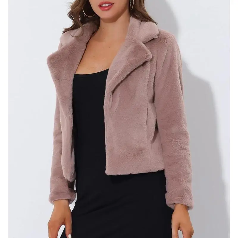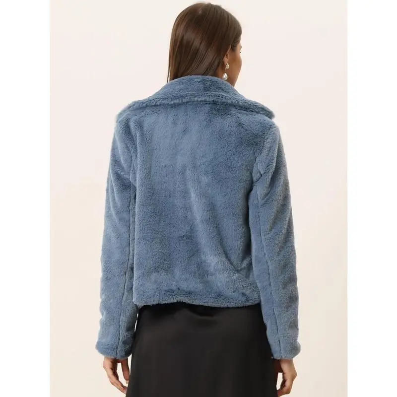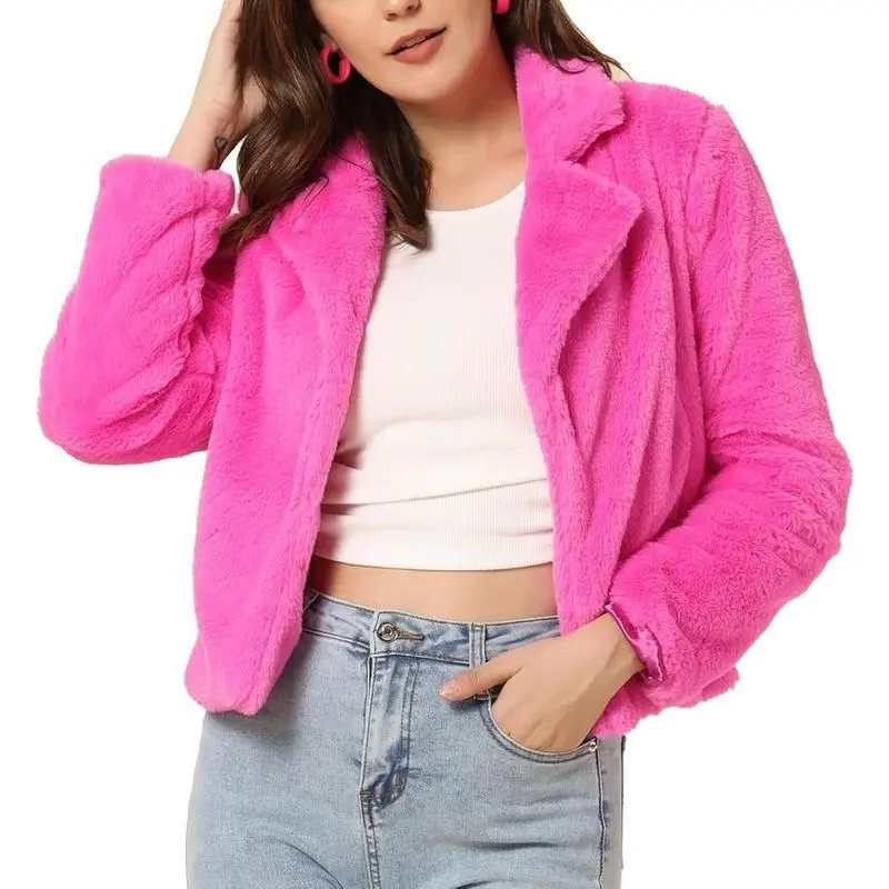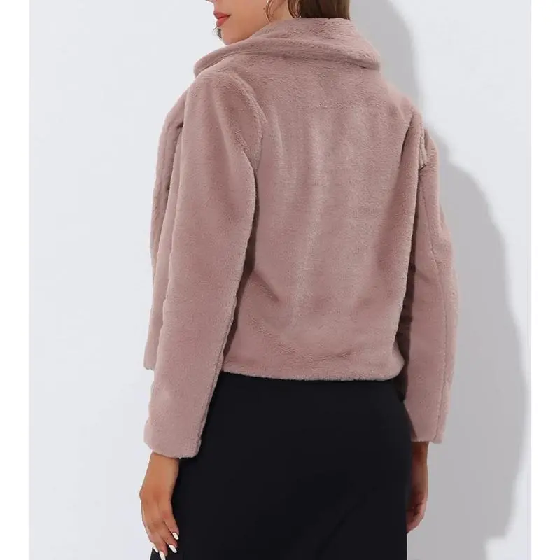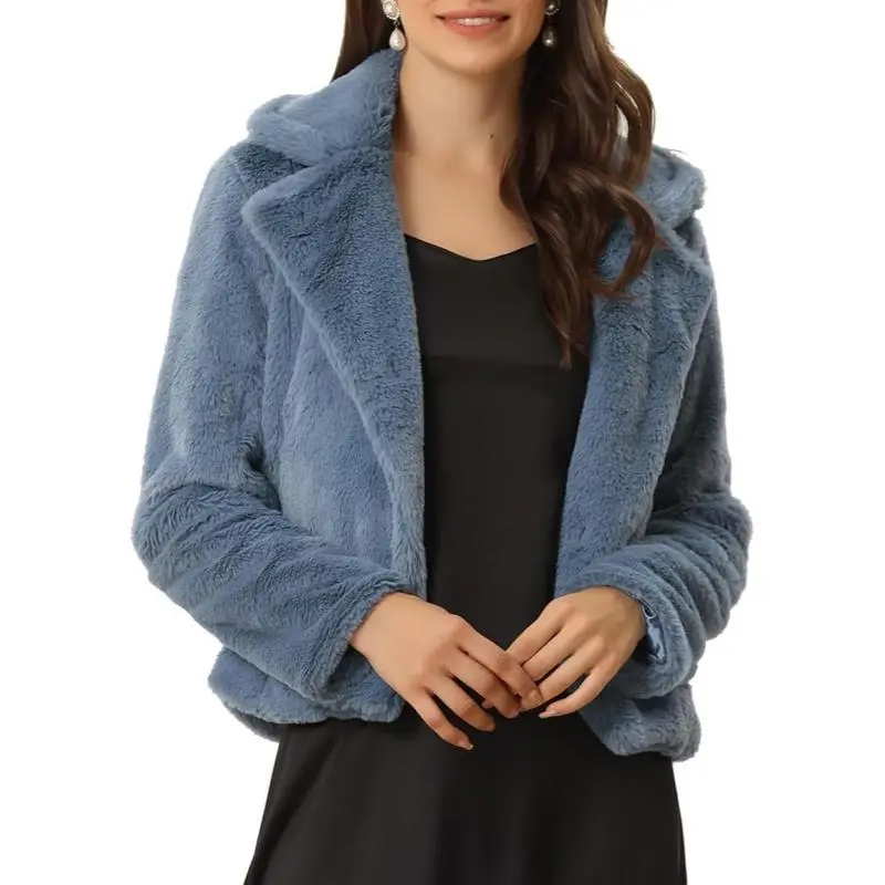 Women's Cropped Faux Fur Jacket Lapel Cardigan Shrug 2025 Winter Fluffy Faux Fur Coat Bridal Dressy White Fur Coat Jacket for Women Turn Down Collar Slant Pockets Teddy Coat for Women Fall Winter Dressy Bridal Jacket for Wedding