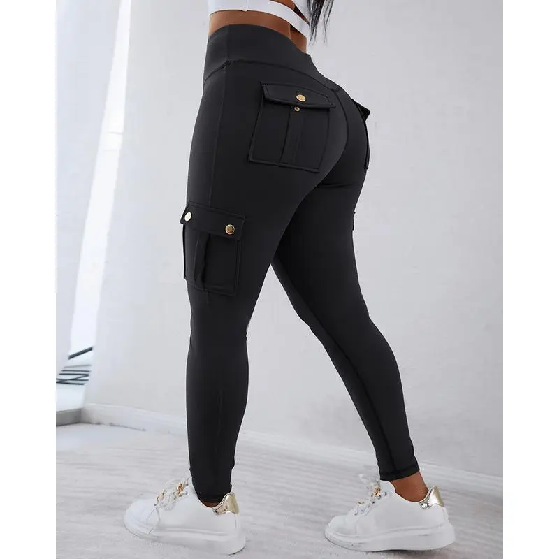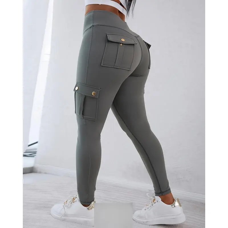 C Womens Butt Lifting Leggings With Flap Pockets High Waist Tummy Control Workout Cargo Leggings Yoga Pants Stretchable For Gym Training Fitness Daily