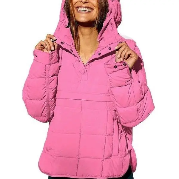 2025OversizedHoodedPufferJacketQuiltedLightweightWinterWarmPulloverPaddedHoodiesCoatPocketWomenswear