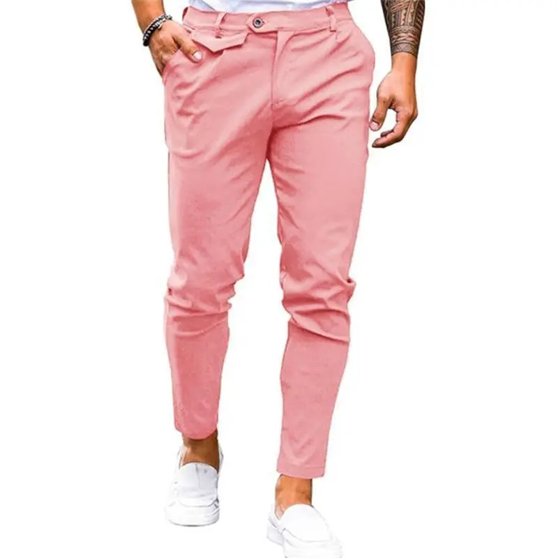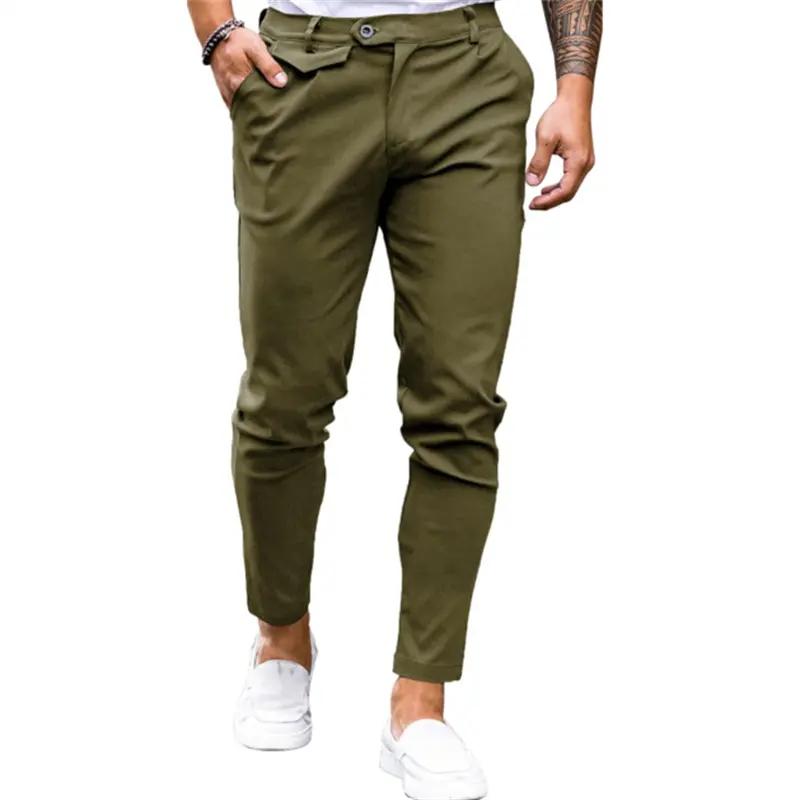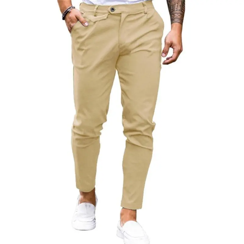Men's Slim Fit Stretch Chinos Comfortable Fashionable Skinny Pants Menswear Trouser Dark Gray Beige