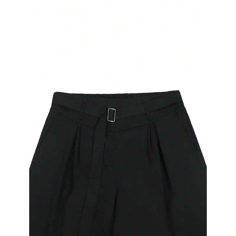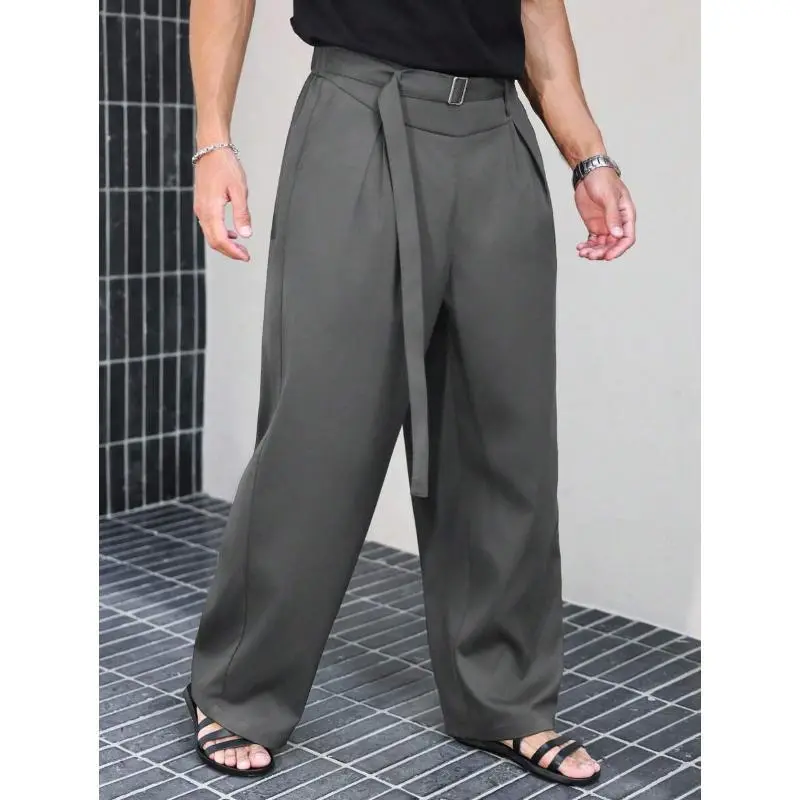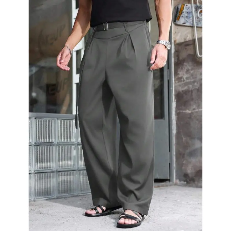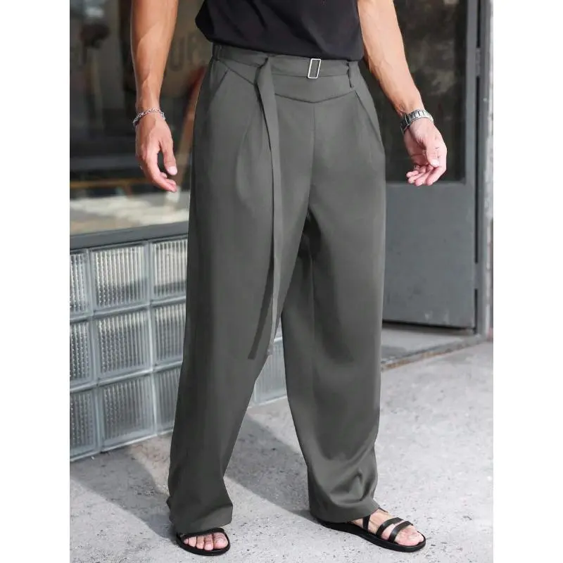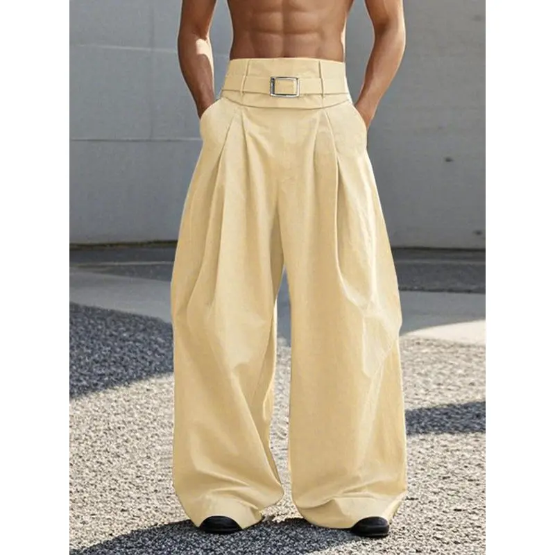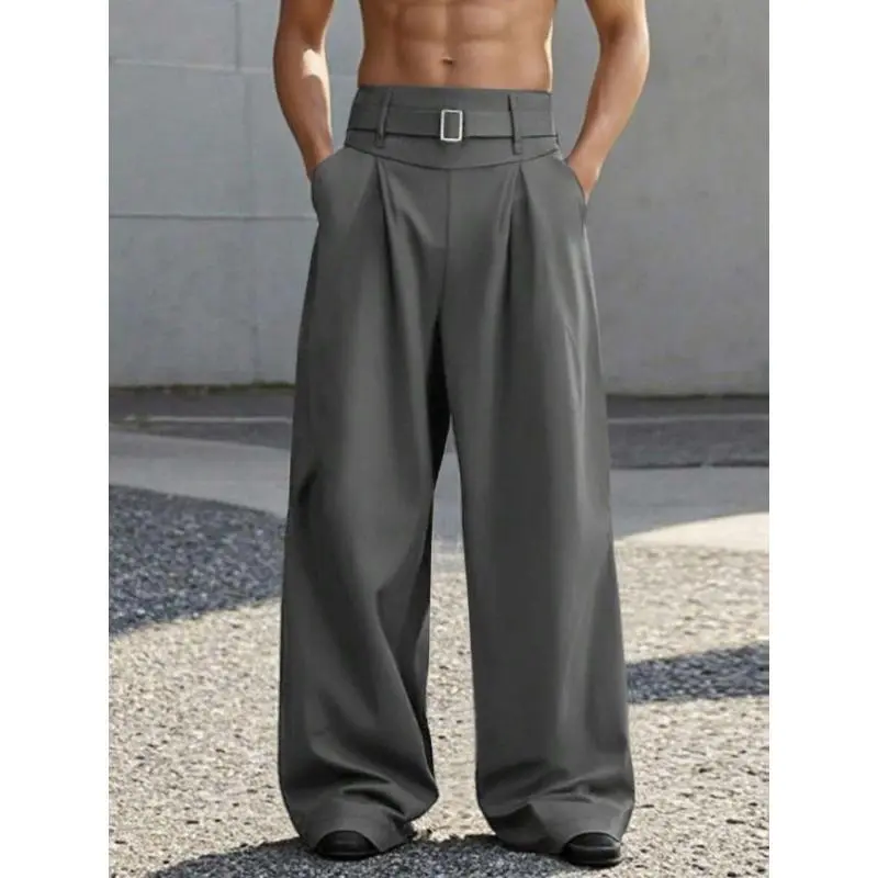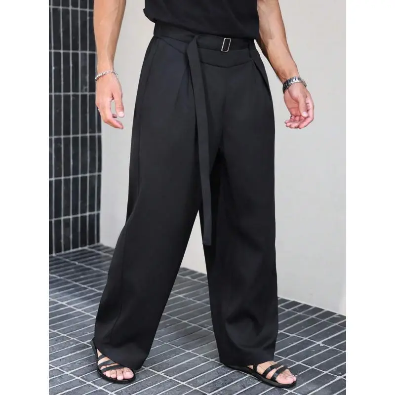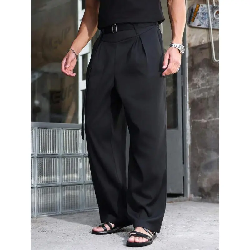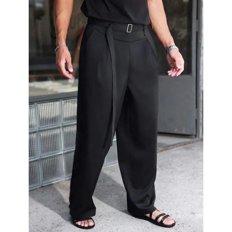 Men'sBlackHighWaistFoldPleatedWideLegPants,ForBackToSchoolCasualFabric