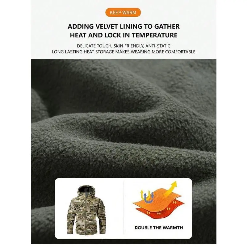 Men's Multi-Pocket Workwear Hooded Jacket, Fleece Waterproof Jacket, 9 Cl Menswear ose-Fitting Pockets Fleece Design. Menswear Coats Coats Tops Long Sleeve Operator Motocross Camo Camouflage Casual Navy Outdoorfun
