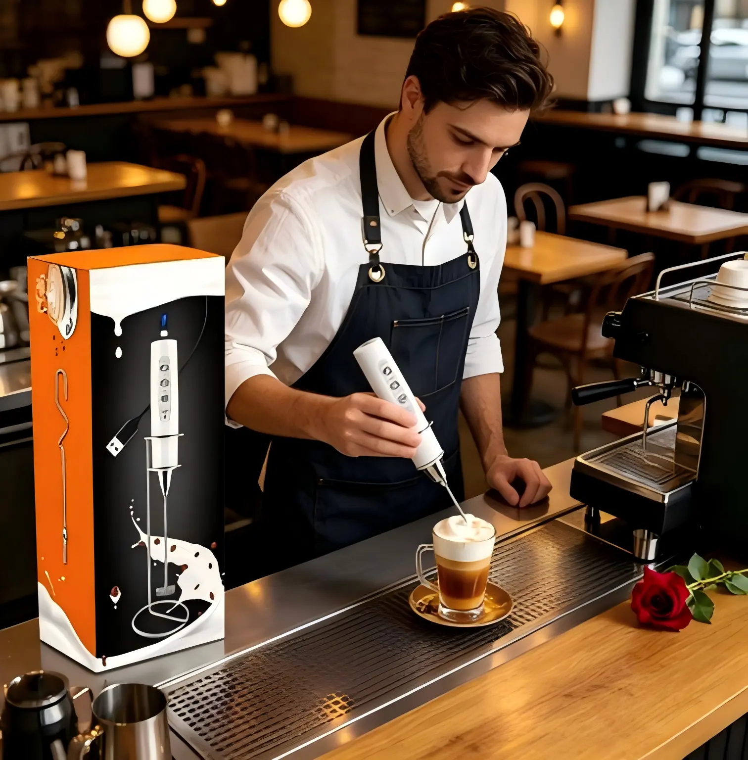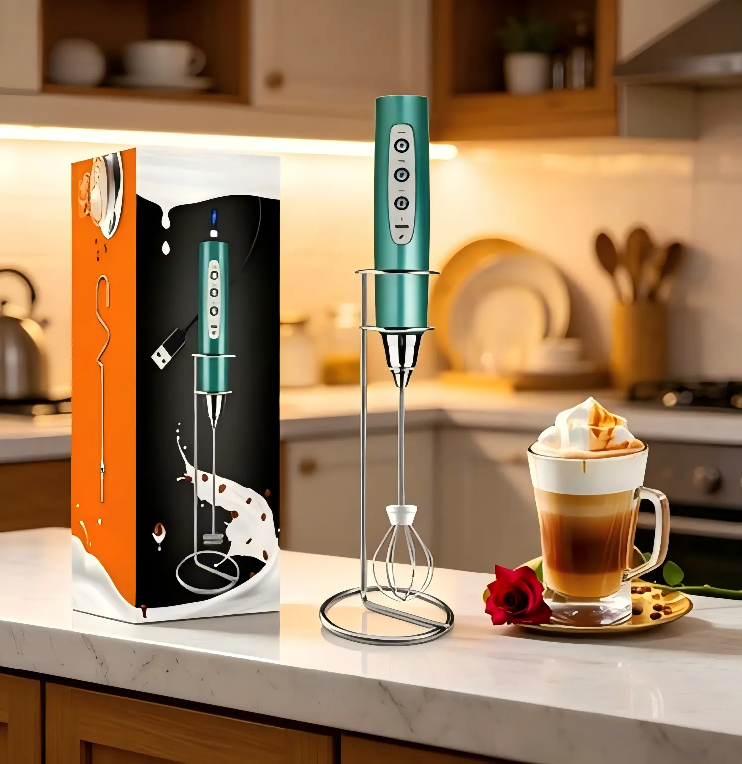【Environmentally Friendly】Say goodbye to disposable batteries! This milk frother features a USB charging design, which is more eco-friendly and lightweight than battery-operated models, letting you charge anytime and anywhere without replacing batteries. The built-in 1500mAh battery supports multiple uses per day when fully charged.