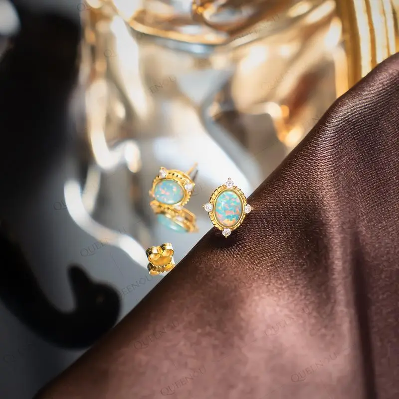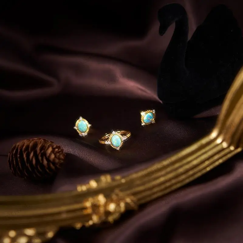 【944】BlackFriday Fantasy Blue 1.5CT Synthetic Opal Ring and Earrings Set