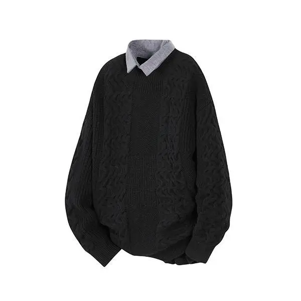Men's Cozy Soft Fake Two-Piece Shirt Collar Cable Knit Sweater ✨ Elevate your casual wardrobe with this textured knit design sweater. It features a fake two-piece shirt collar, adding a stylish touch. The cable knit pattern offers a unique texture, perfect for layering. Available in multiple colors, it suits various styles. Ideal for daily wear, office settings, or as a layering piece. This pullover ensures comfort and style. Perfect for Everyday Use This sweater is a must-have for your daily casual wear. Its soft material and cozy design make it a go-to choice for layering. Enjoy its comfort and style in any setting. Stay fashionable while keeping warm with this versatile piece.