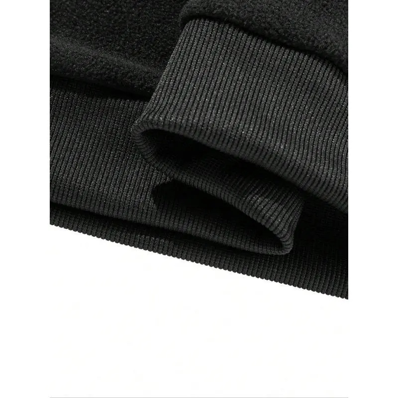 Men's Half-Zip Polar Fleece Long Sleeve Sweatshirt, Thick Solid Color Casual Warm Fashion Stand Collar Pullover for Fall & Winter