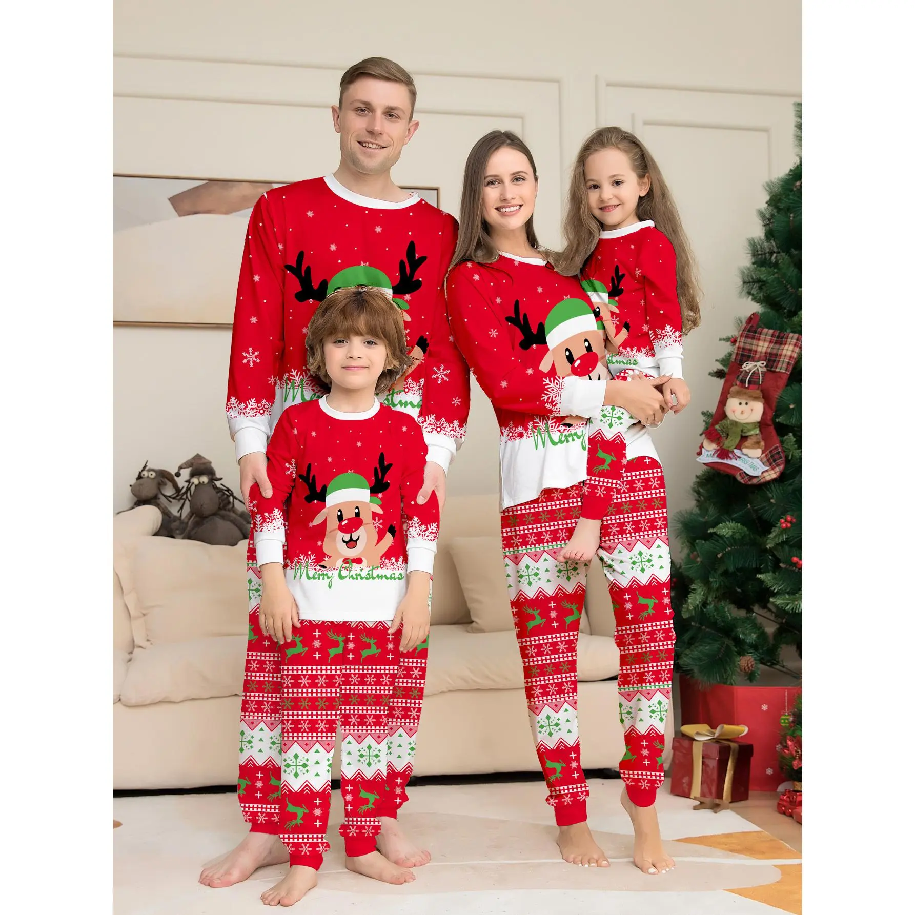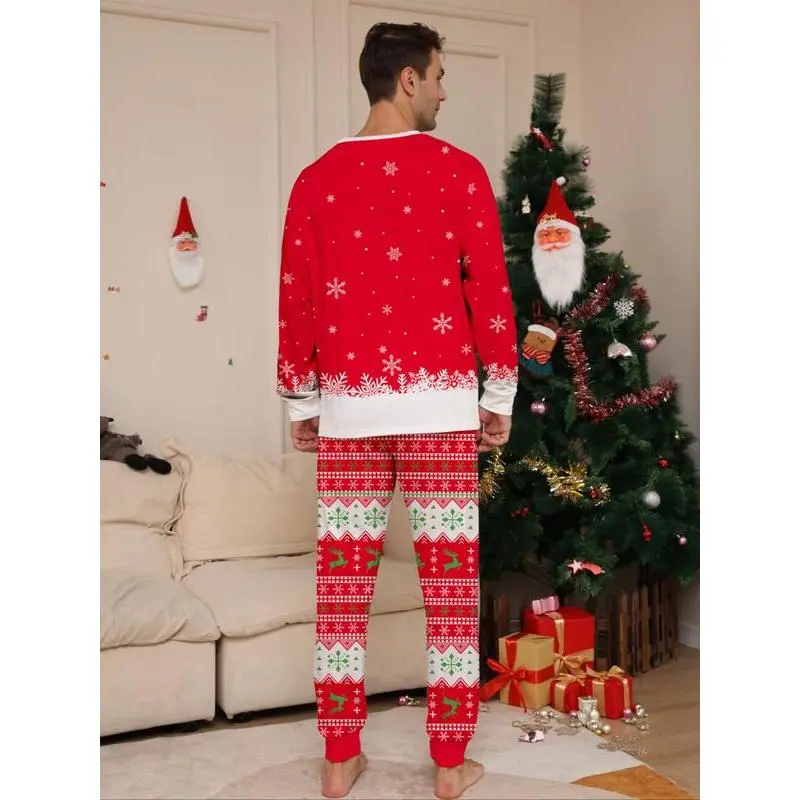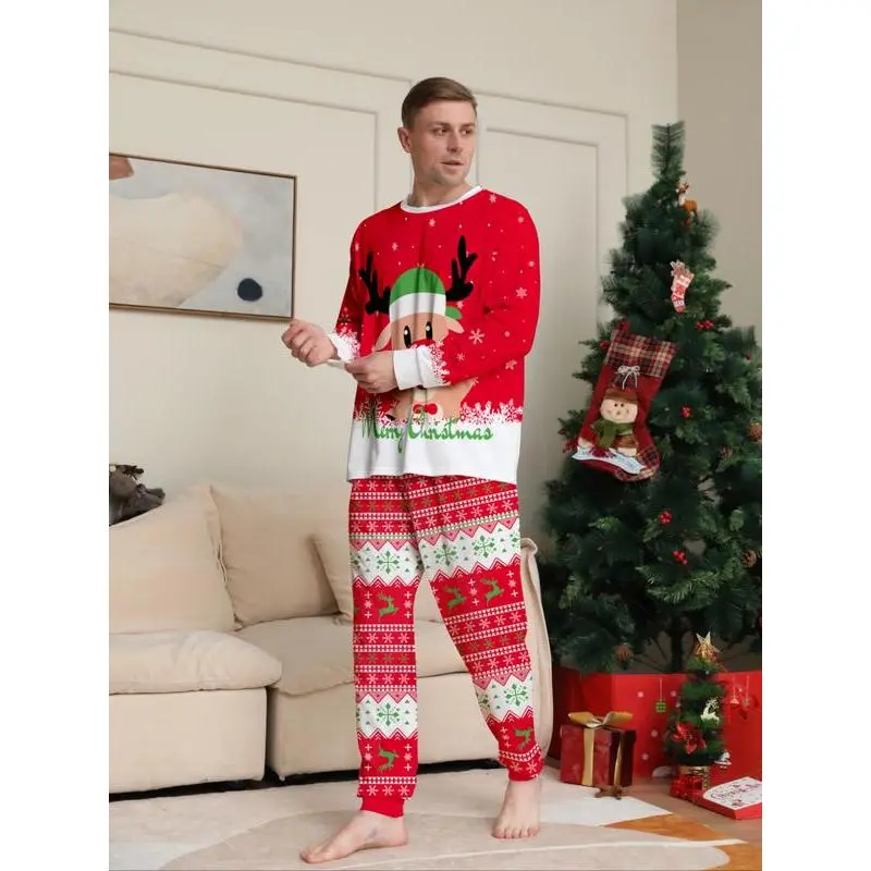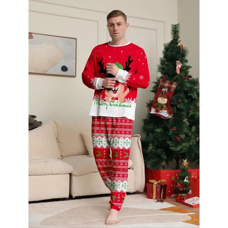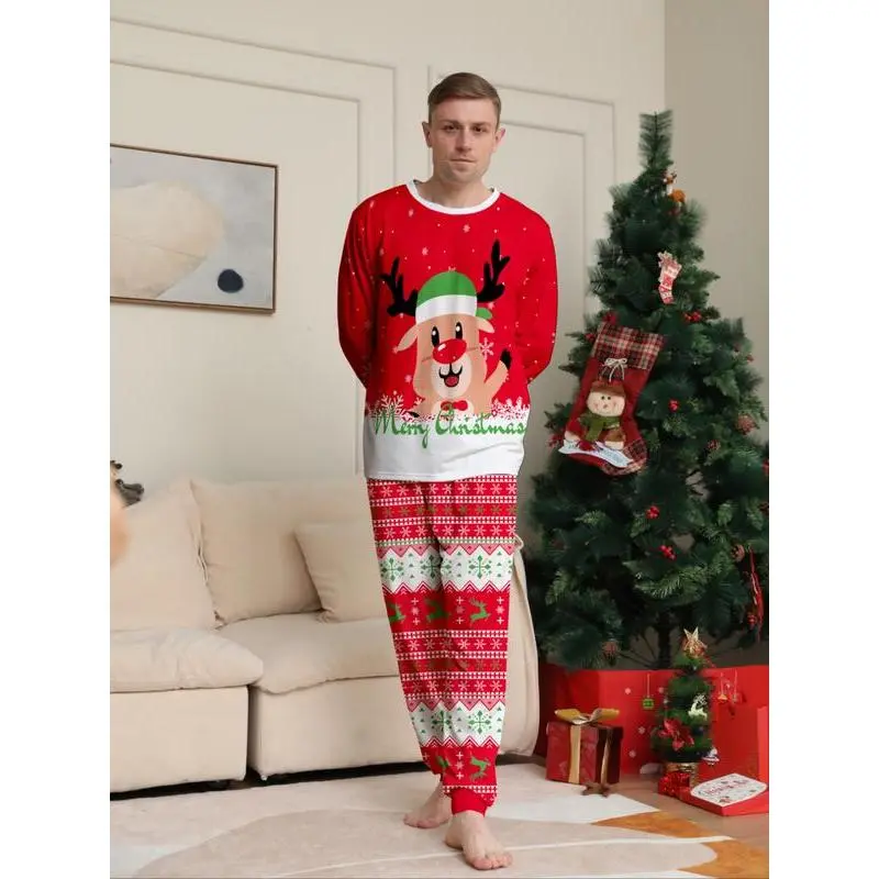 ChristmasCouplePajamasSet,ReindeerPrint,CasualFallWinterHomeWear,FittedStyle,ComfortableDailySleepwear