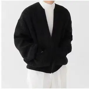 Autumn and winter new fashion trends ins trendy knitted cardigan men's solid color sweater loose casual lazy style