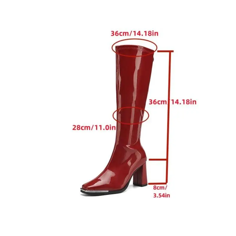 【Knee-high Length】: The knee-high silhouette provides added coverage, enhancing warmth during the fall and winter seasons. 【Side Zipper Closure】: Featuring a convenient side zipper, these boots offer easy wearability while maintaining a sleek look. 【Stacked Block Heel】: Designed with a sturdy stacked block heel, ensuring reliable support for all-day wear without compromising stability. 【Open Slit Detail】: Incorporating elastic open slit details allows for greater flexibility, providing ease of movement in stylish boots. 【Almond Toe Shape】: The almond toe shape contributes to a refined appearance, promoting a fashionable yet comfortable fit for various occasions.