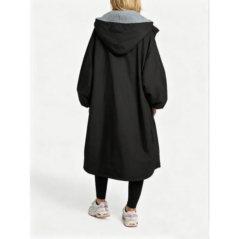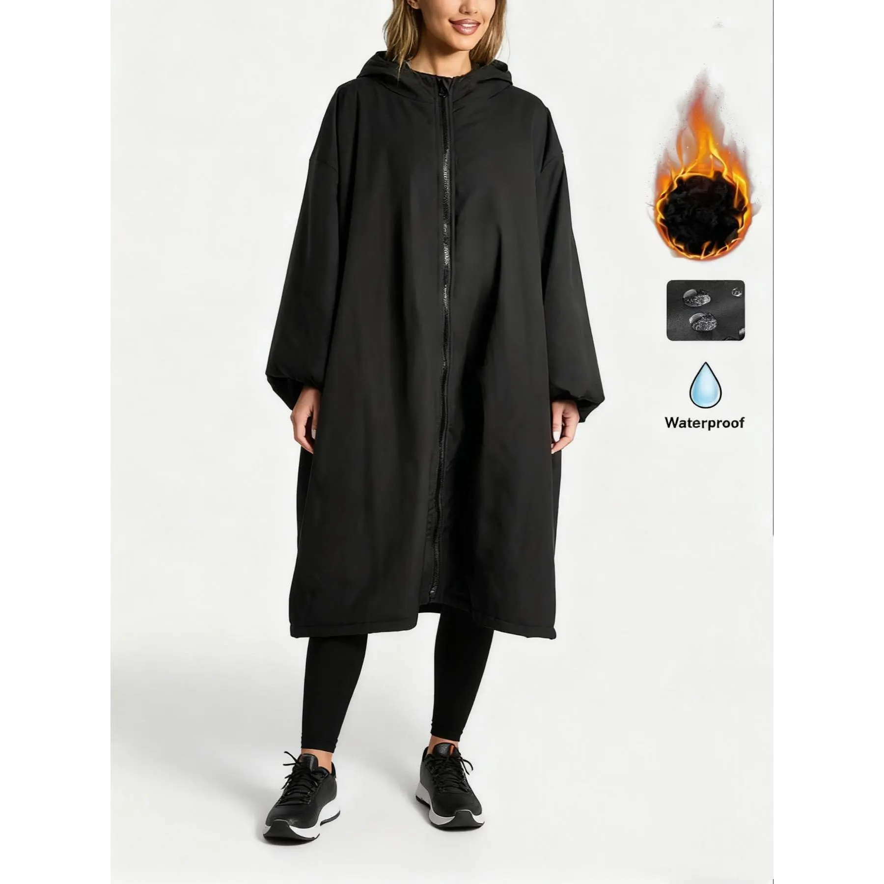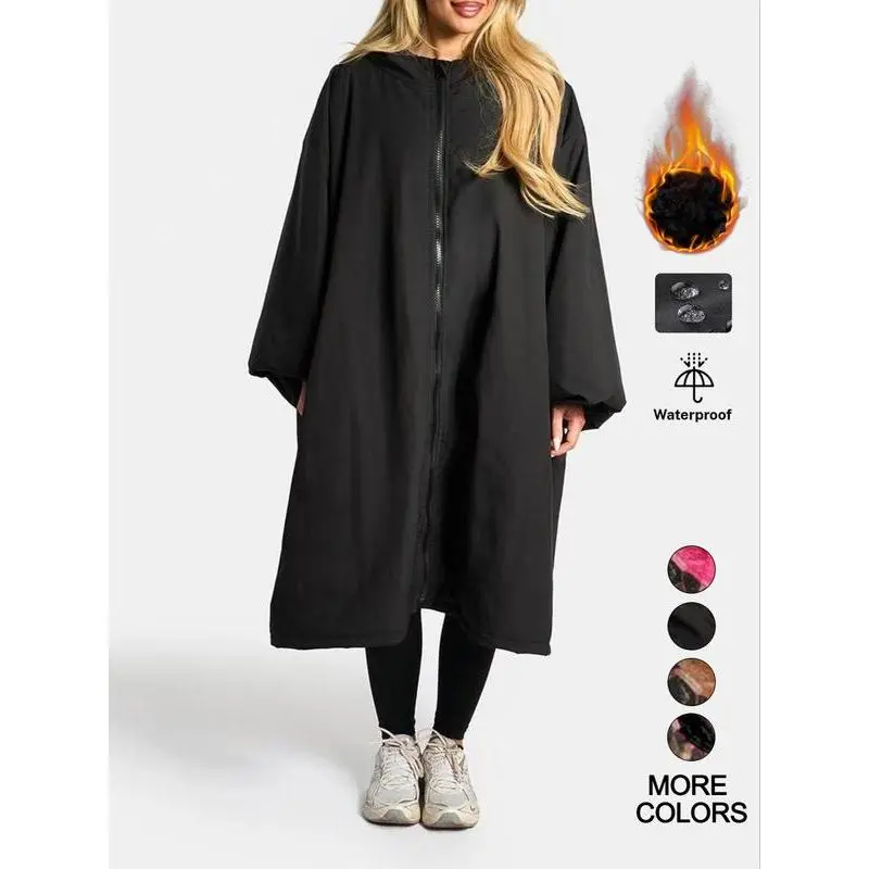 Women's Long Leopard Print Colorblock Windbreaker Jacket, Loose-Fit Casual Style, Fall & Winter Waterproof Warm Coat, Thermal Lined Outerwear