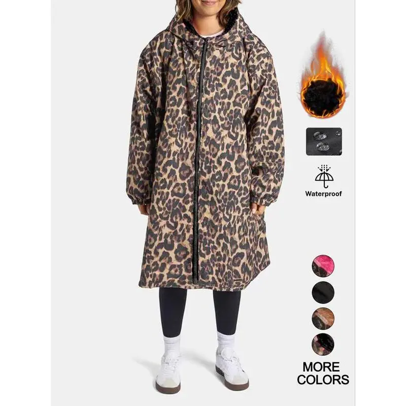 【Unique Print】: Features a striking colorblock and leopard print, setting it apart from standard coats in the market. 【Warm Interior】: Equipped with a fleece-lined hood that provides effective insulation against cold autumn and winter weather. 【Water Resistance】: Crafted to resist water, ensuring you stay dry during unexpected rain showers or snowy conditions. 【Loose Fit】: Designed with a loose-fitting structure that allows for ease of movement, making it suitable for daily wear. 【Seasonal Adaptability】: Tailored for fall and winter, offering warmth and protection in transition seasons, ideal for layering.