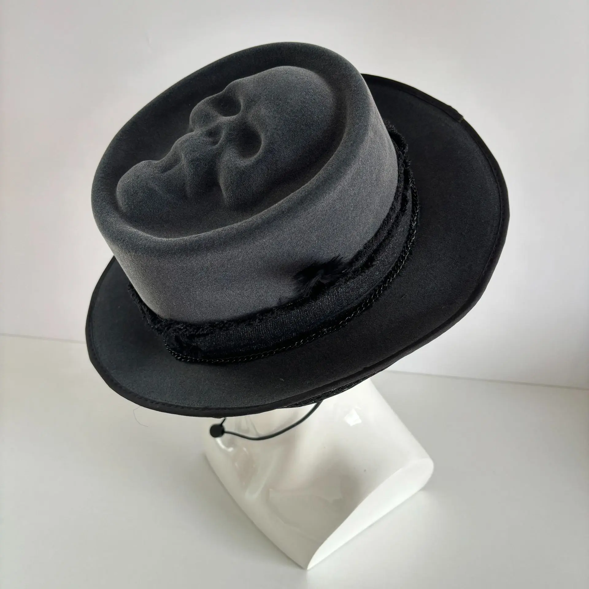 HalloweenNew"SadReaper"HandmadeSkullCapPlushDenimHatMasqueradeHatMaskBox..