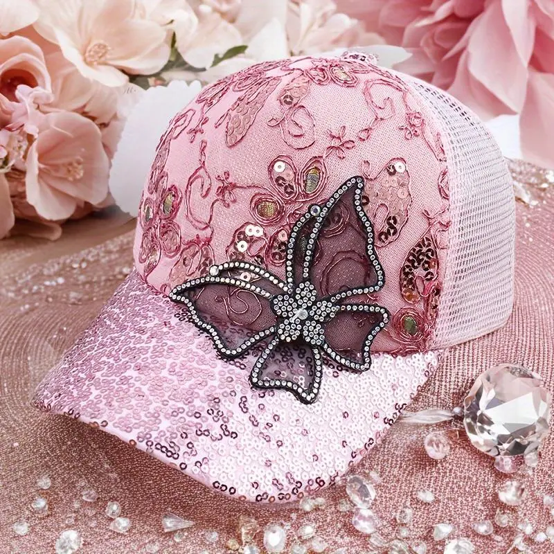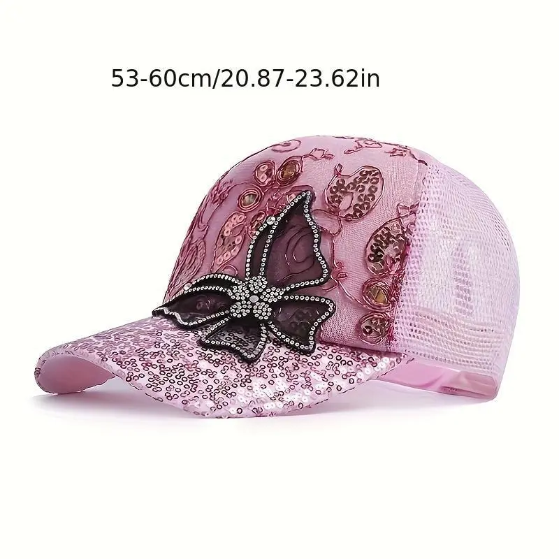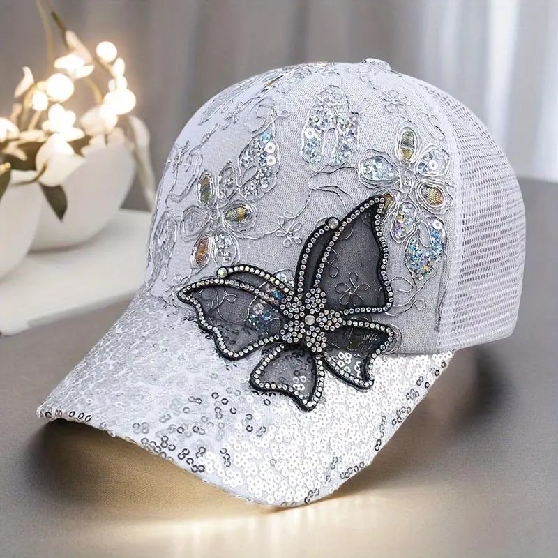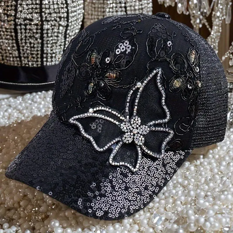Women's Baseball Hat Mesh With Air Permeable Shade Hat, Butterfly Embroidery Sequin Trend Hat, Women's Dot Diamond Cap, Street Casual Fashion Hat