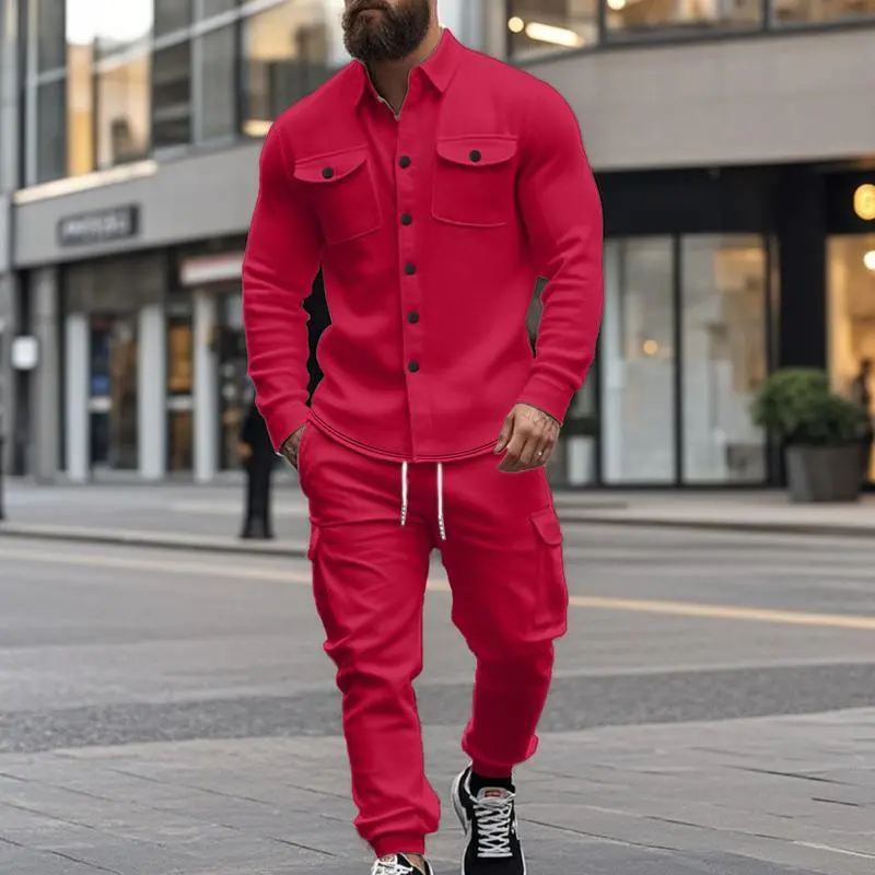 Men'sPlusVelvetWorkwearHoodieSetOutdoorCollarJacketLooseWarmTwo-PieceOutfit