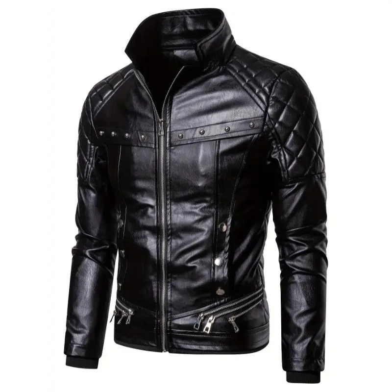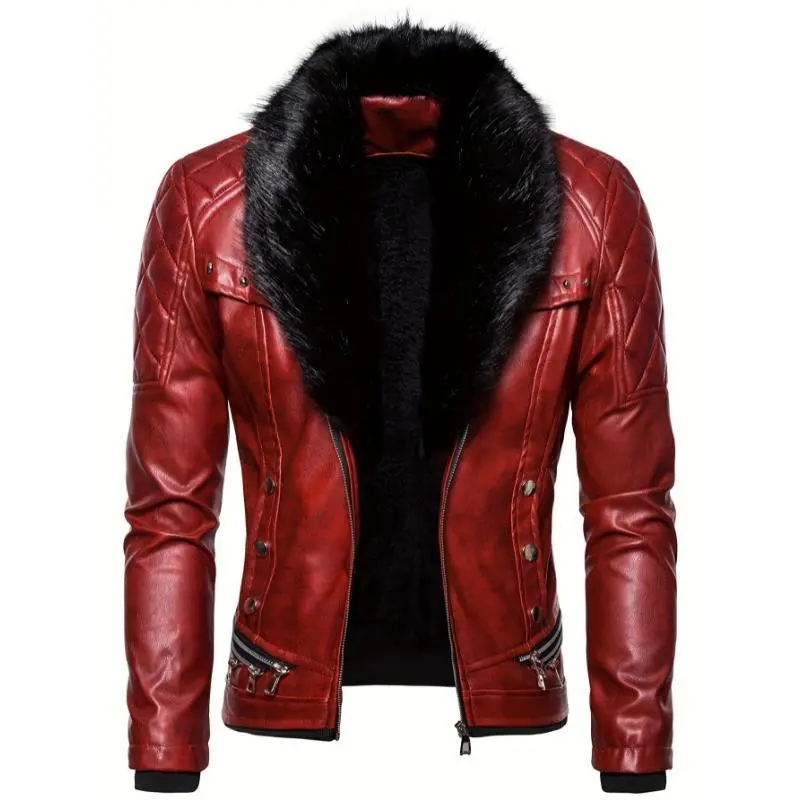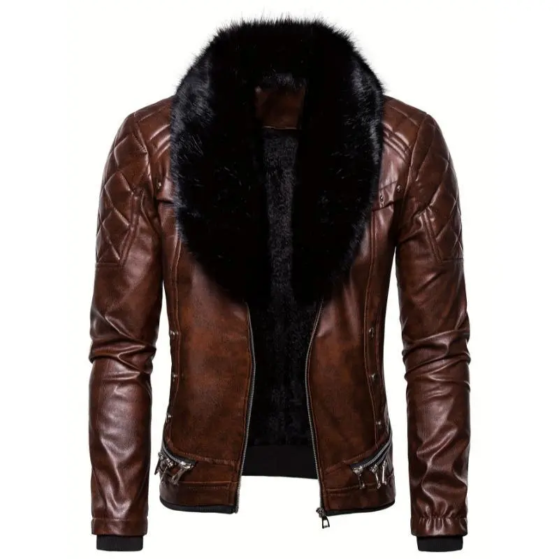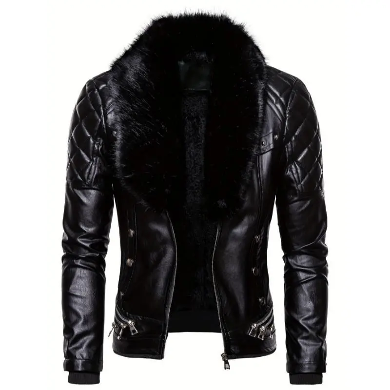 Men'S Detachable Fur-Collared Jacket, Suitable for Middle Eastern Styles. Menswear Coats Polyester Stretch Tops Fabric Zipper Black Knife Wetsuit Long Sleeve