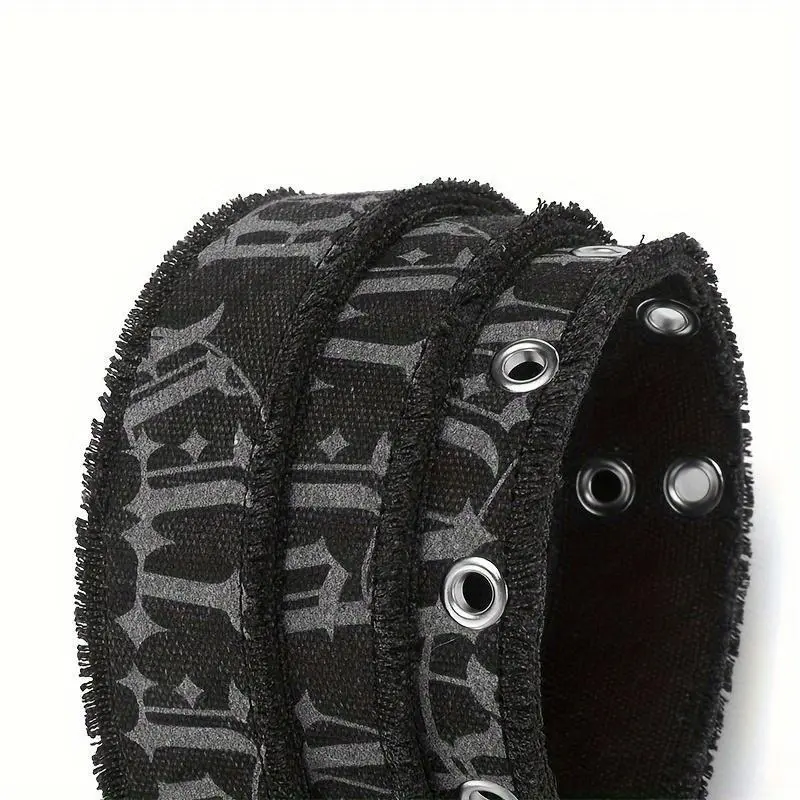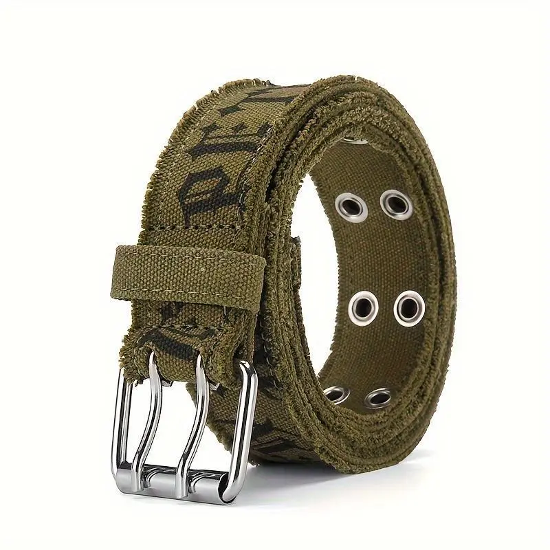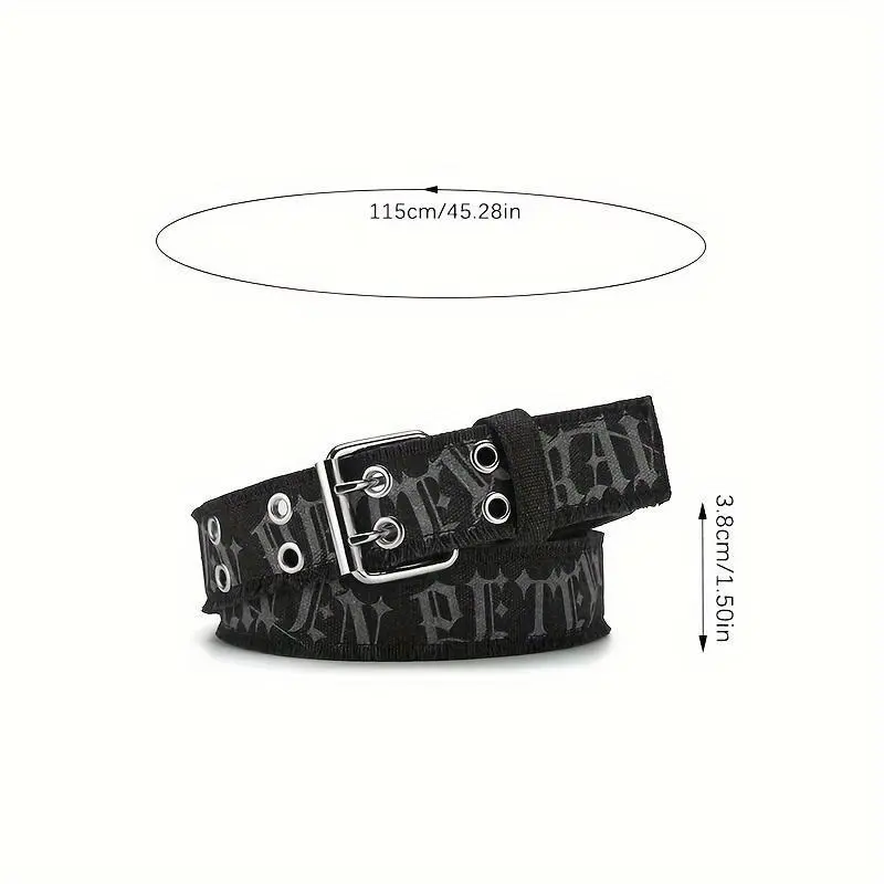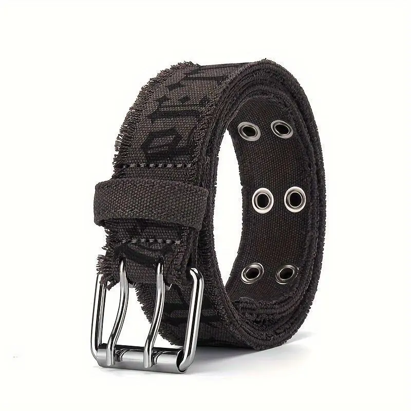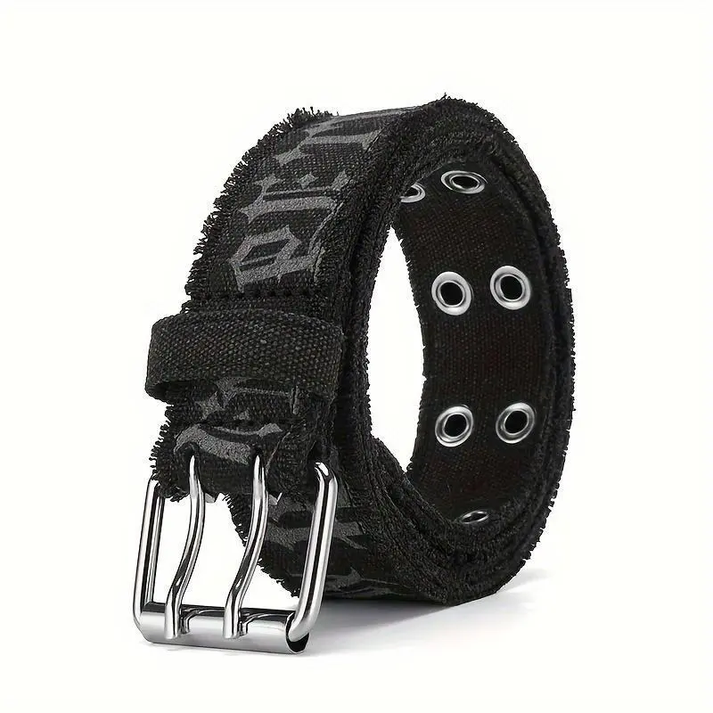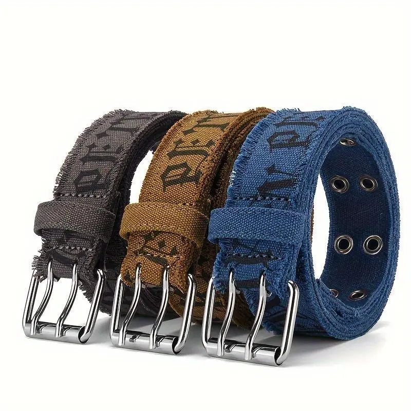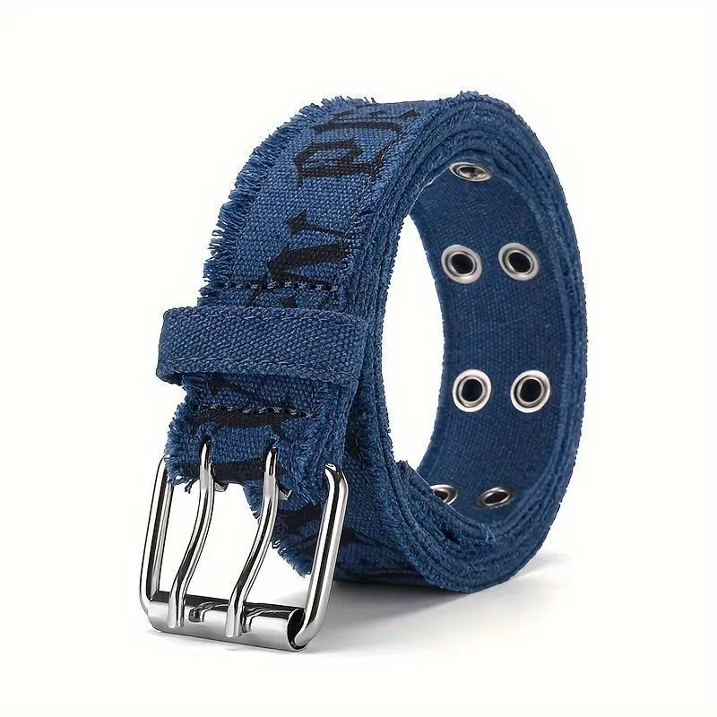 1pc Denim Men's Belt Embossed Washed Belt Double Buckle Internet Celebrity Men's Belt