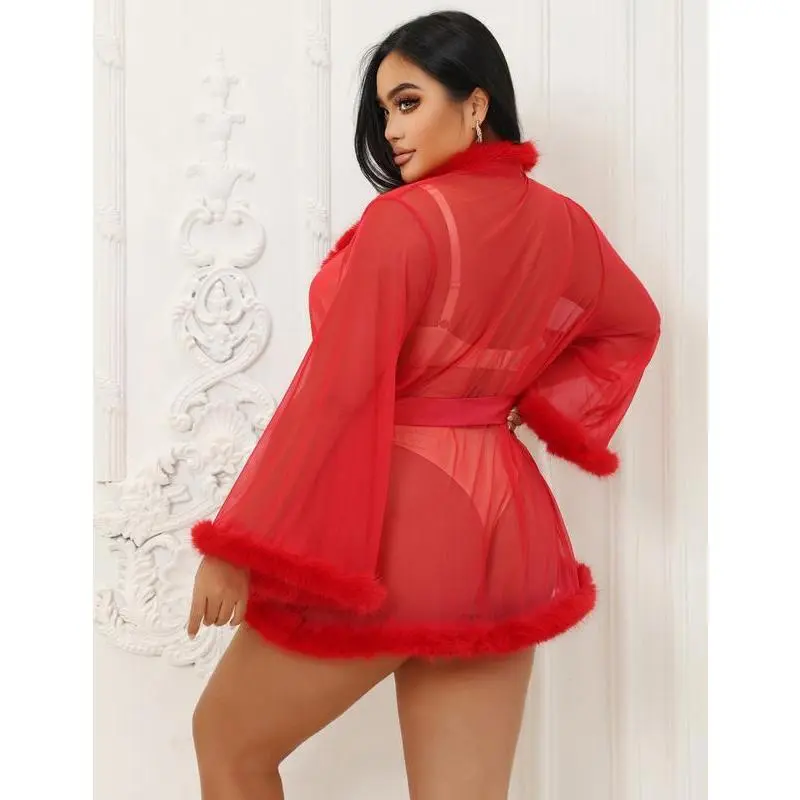 Fabric: This women's long-sleeve nightgown is made of high-quality transparent mesh fabric and faux fur Fashionable Sexy Nightgown: Transparent Nightgown, Short Sleeve Design, Slanted V-neck, Ribbon Decoration, Sleeves or Hem Trimmed with Faux Fur, Perfectly Shows Your Figure, Makes You Look More Elegant Suitable for Occasions: Perfect as a bridesmaid dress or bridal chamber dress! Ideal for Valentine's Day gifts, bridal lingerie gifts, bachelorette parties, lingerie parties, birthday parties, costume parties, maternity photoshoots, bridal chamber photoshoots, comedy performances, or late-night dates with your special partner Great Gift: The transparent mesh bathrobe can be used as a perfect gift for brides, best friends, lovers, wives, newlyweds, or as a treat for yourself on weddings, birthdays, honeymoons, Valentine's Day, Christmas, Halloween, anniversaries, and other holidays Style: Transparent Robe with Fur, Mesh Short Sleeve Bridal Kimono Robe Nightgown, Feather Bridal Robe for Wedding