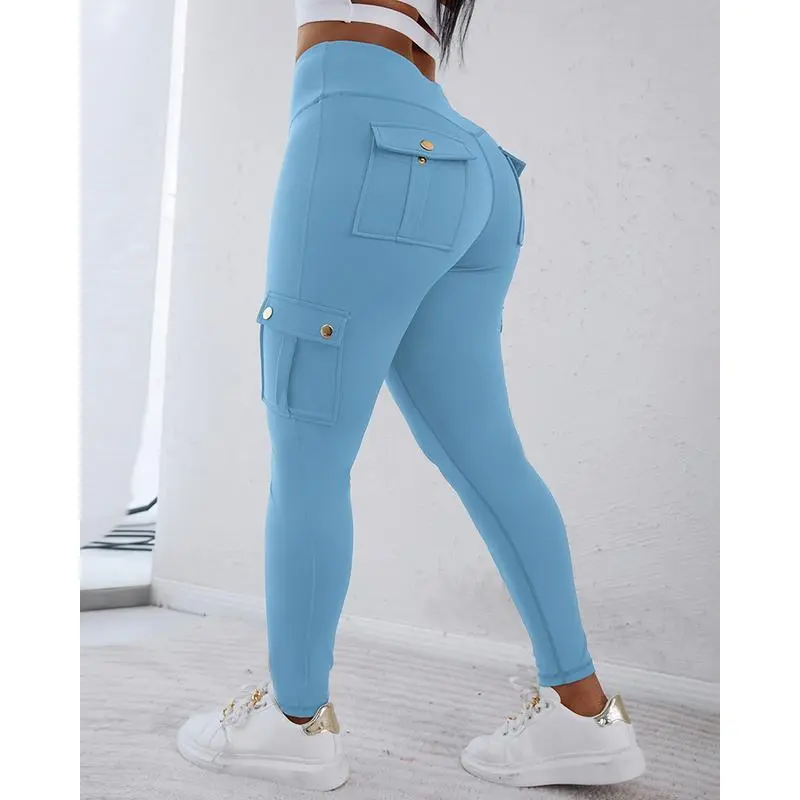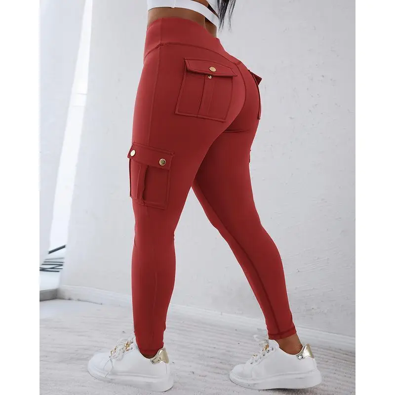Womens Butt Lifting Leggings with Flap Pockets High Waist Tummy Control Workout Cargo Leggings Yoga Pants Stretchable Gym Training Fitness