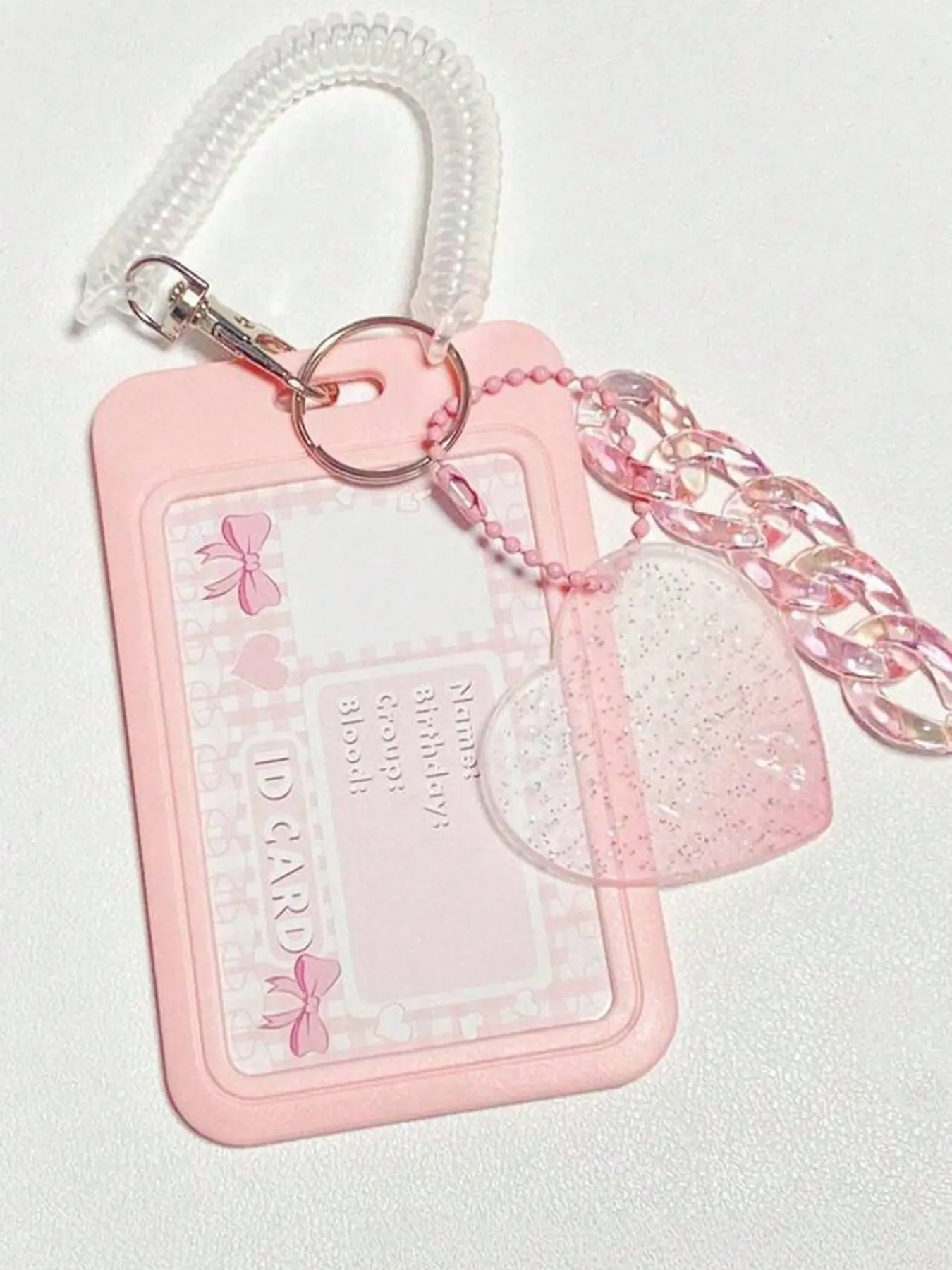 Transparent Star Pendant Keychain Card Holder, Durable ID Case, Maroon Acrylic Decorative Chain, Jelly Color Elastic Hair Tie