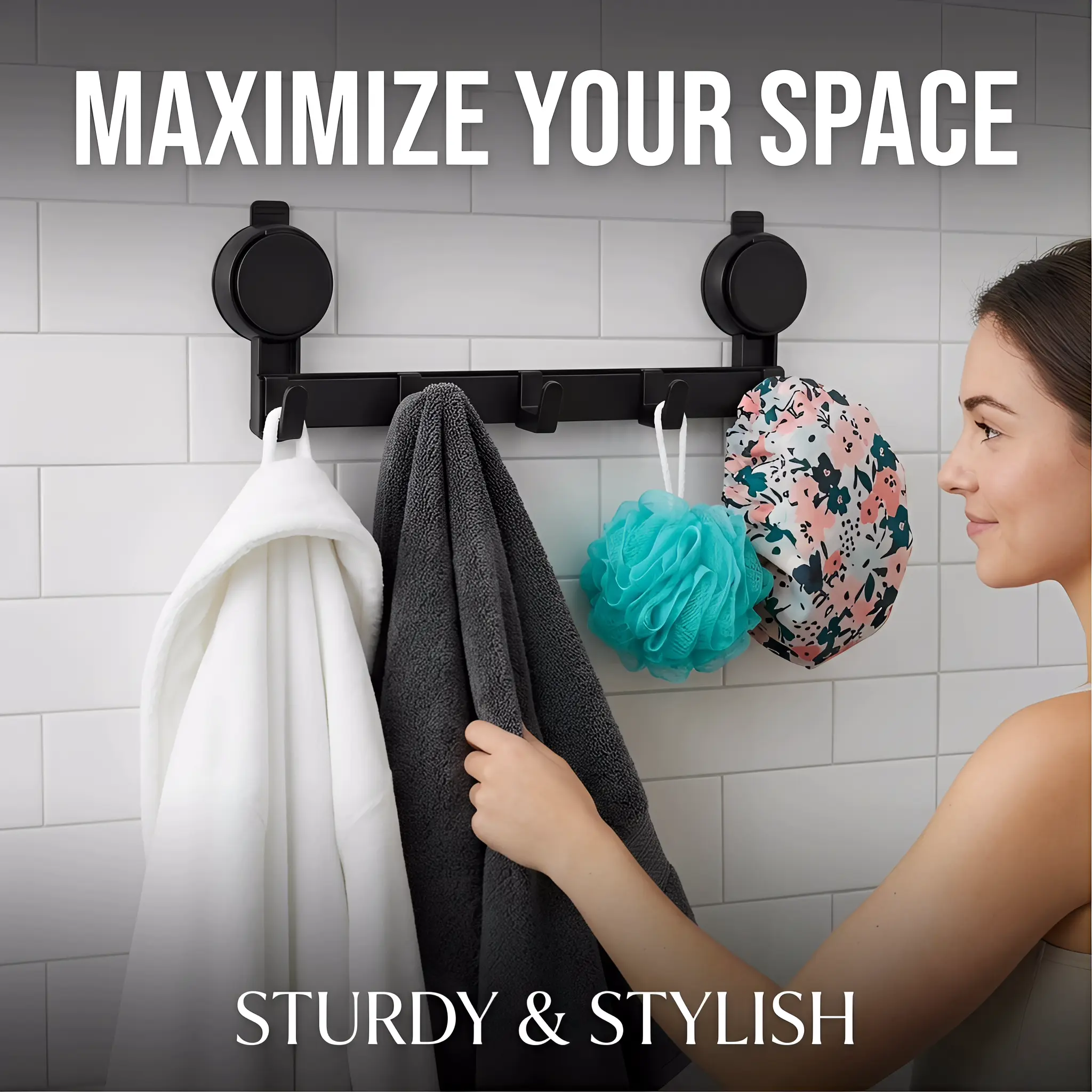 Upgraded vacuum suction cup design, ultra-strong load-bearing capacity. Won't slip or fall even when holding soaking wet thick bathrobes, towels, heavy coats, backpacks or kitchen utensils.