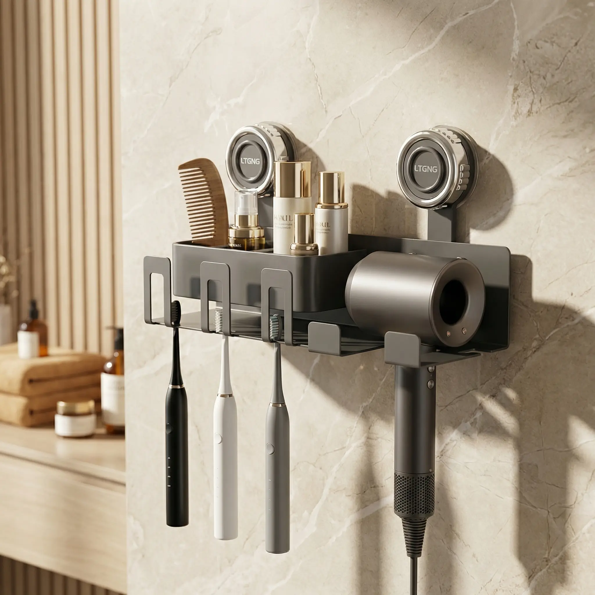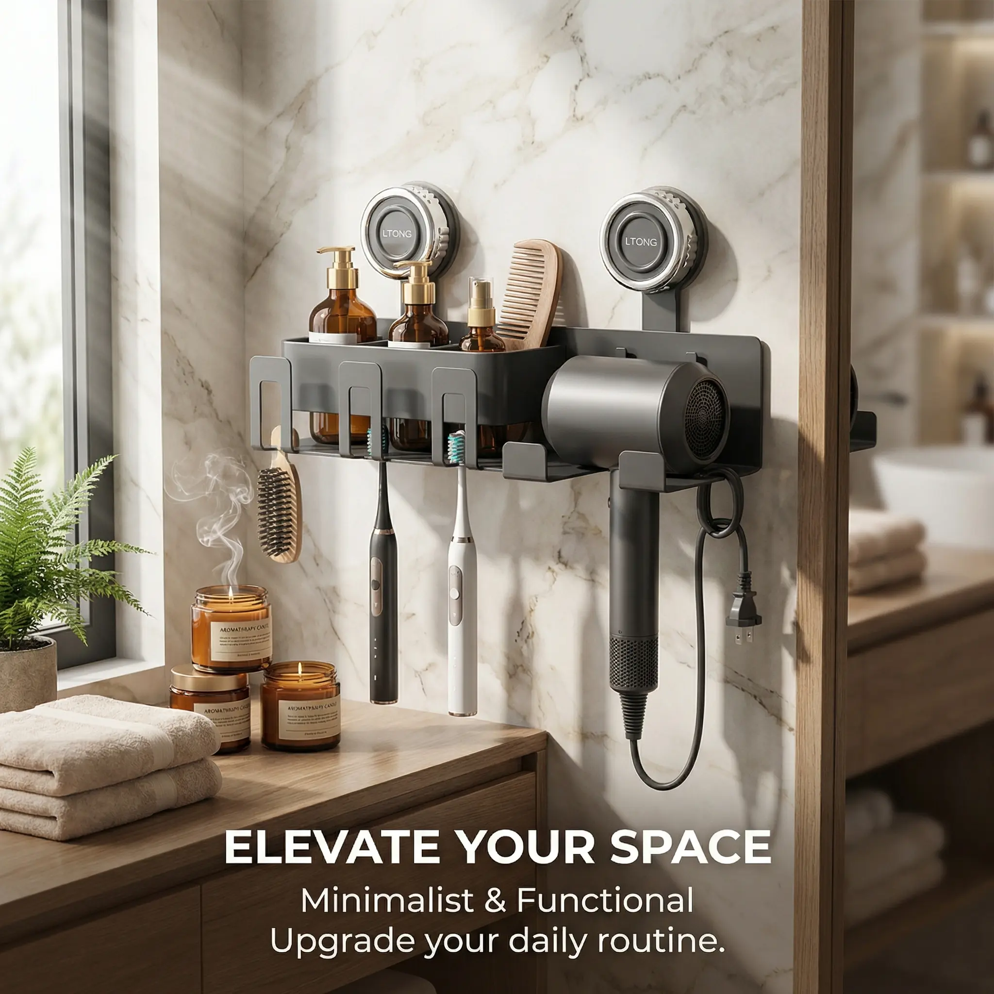 No-Drill Suction Cup Hair Dryer Holder & Bathroom Organizer