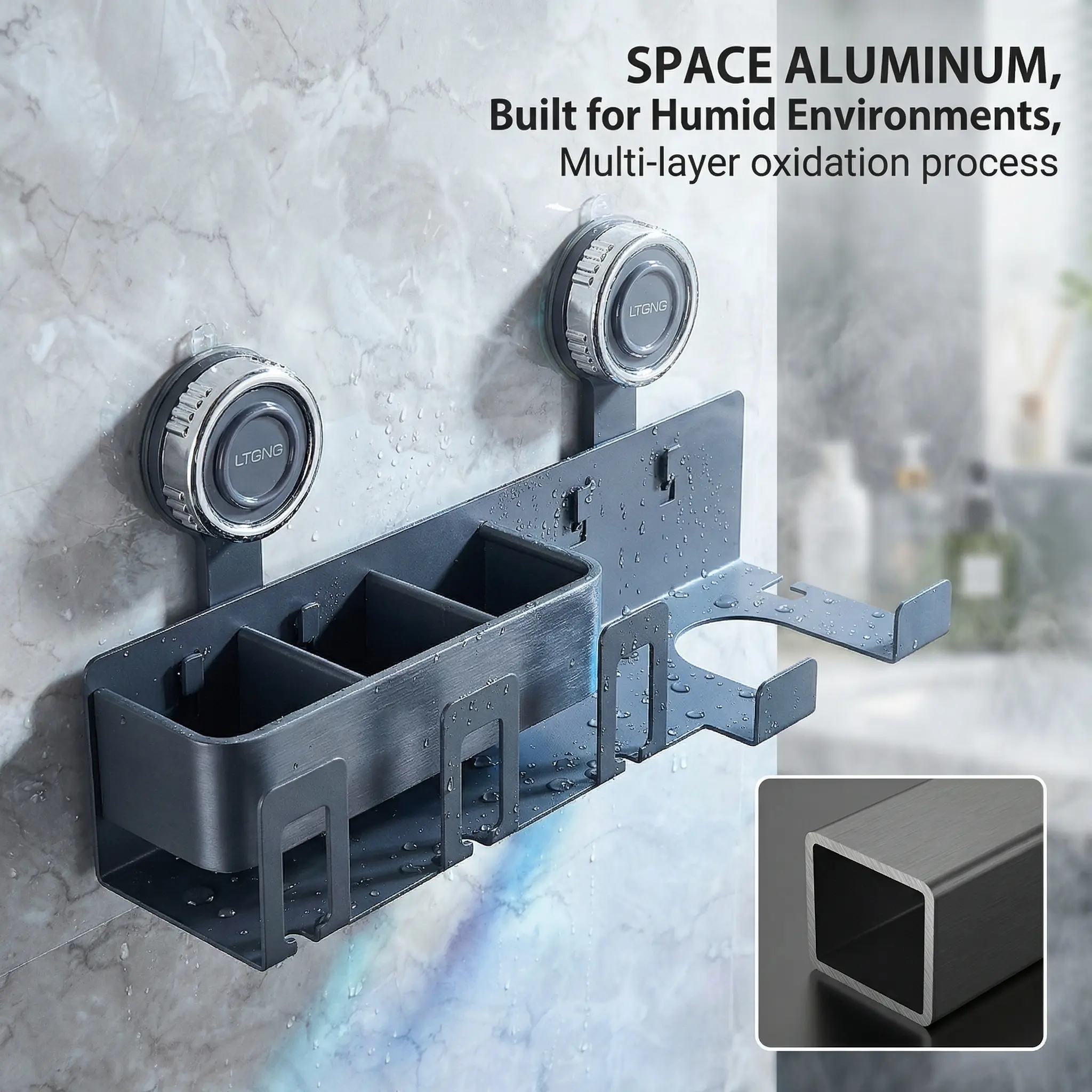 Tired of a cluttered bathroom counter? Say goodbye to messy countertops, tangled cords, and permanent wall damage with our Space Aluminum Vacuum Lock Suction Cup Hair Dryer Holder — the ultimate renter-friendly, no-drill storage solution for your bathroom!