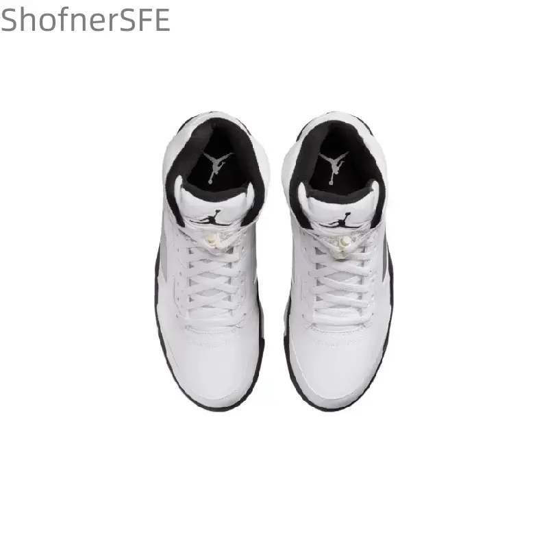🏀 White and Black Retro Anti-Slip Wear-Resistant Basketball Shoes for Men
