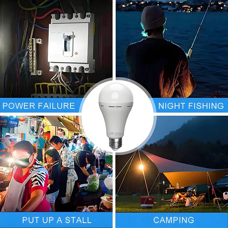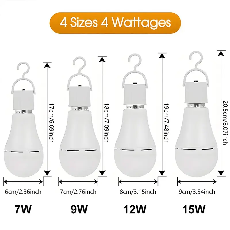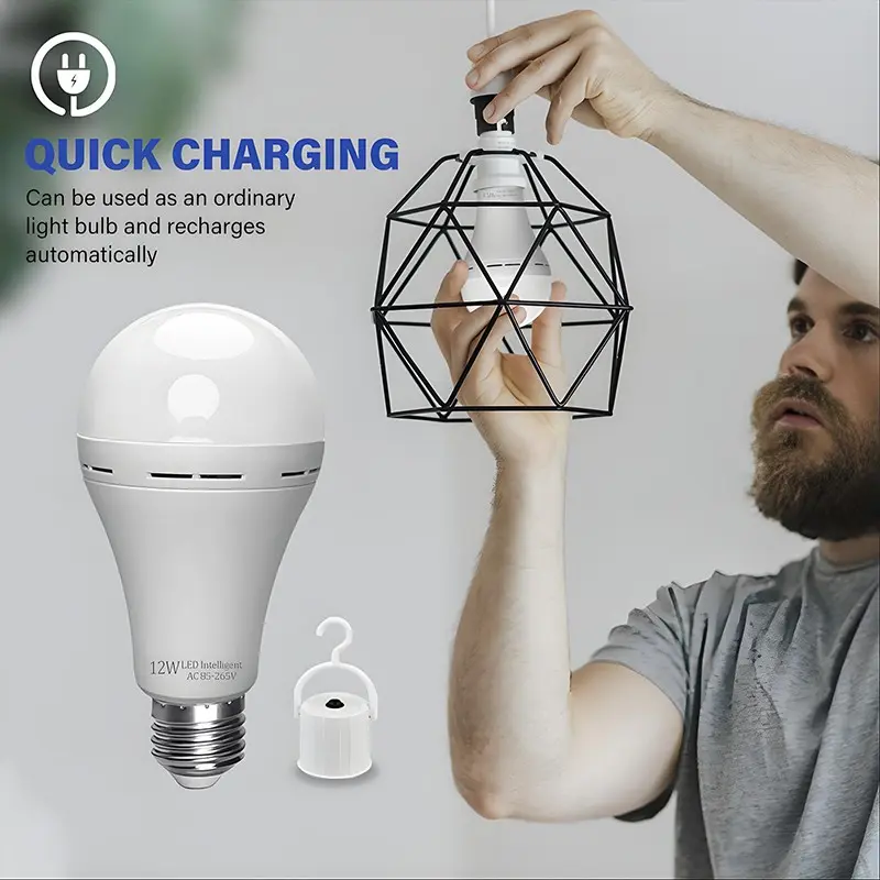 KASOTILE Emergency Rechargeable Light Bulbs, 1200mAh Battery Backup, 7W/9W/12W/15W 80W Equivalent LED Bulbs Auto-On During Power Outage, for Hurricane, Emergency Use (Daylight)